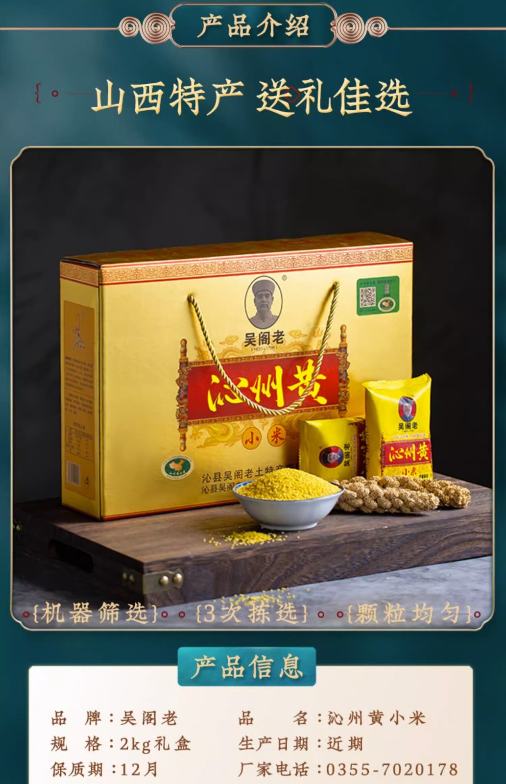 吴阁老 小黄米 山西特产沁州黄小米礼盒 送礼小米团购年货礼盒2kg 自营