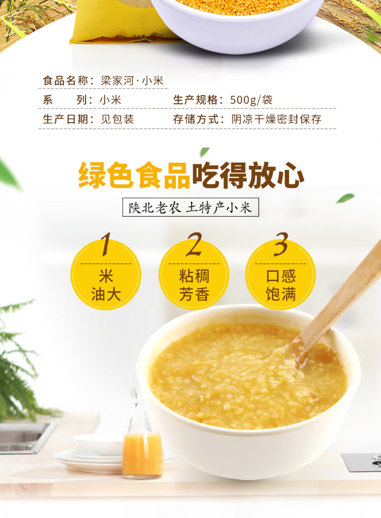 天地粮人 精品 小米 月子米 小米粥 粗粮杂粮 黄小米350g