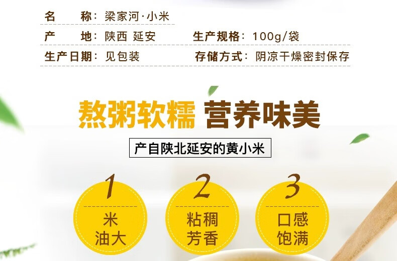 梁家河 陕西特产黄小米新米陕北特产黄小米香糯粘稠营养味美100g5 自营