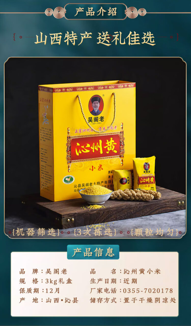 吴阁老 山西特产沁州黄小米年货礼盒装送礼小黄米3kg 自营