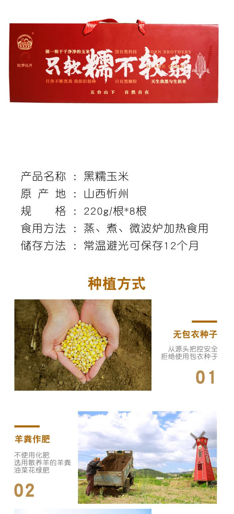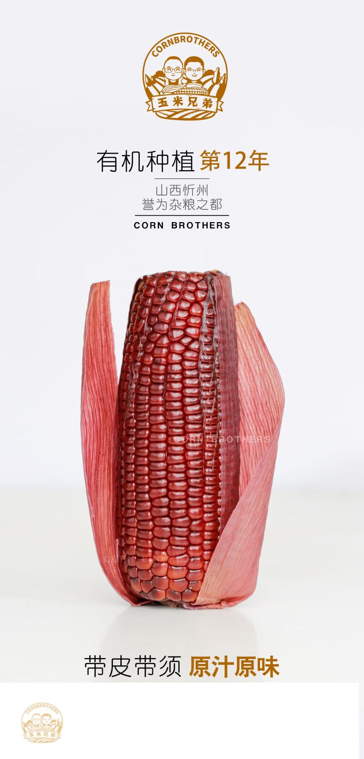 玉米兄弟 有机黑糯玉米真空包装有机认证,无添加 220g/根x8根 自营
