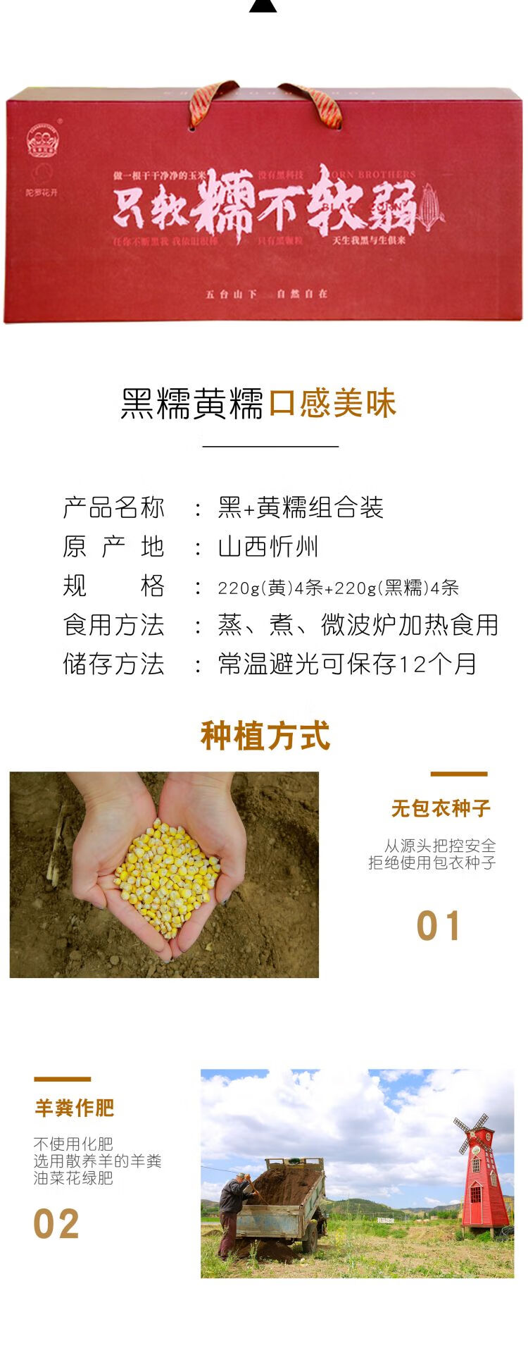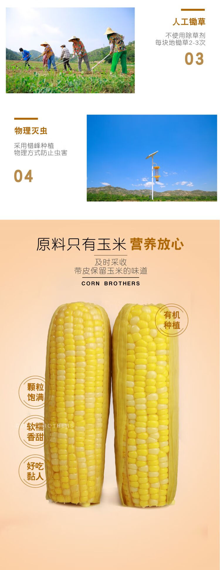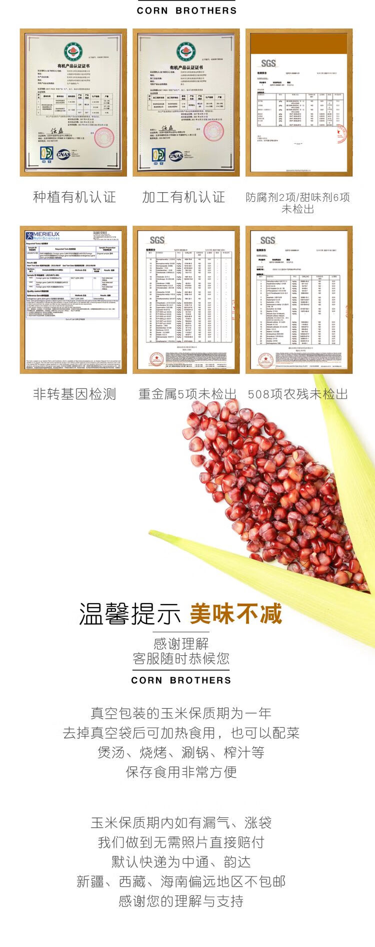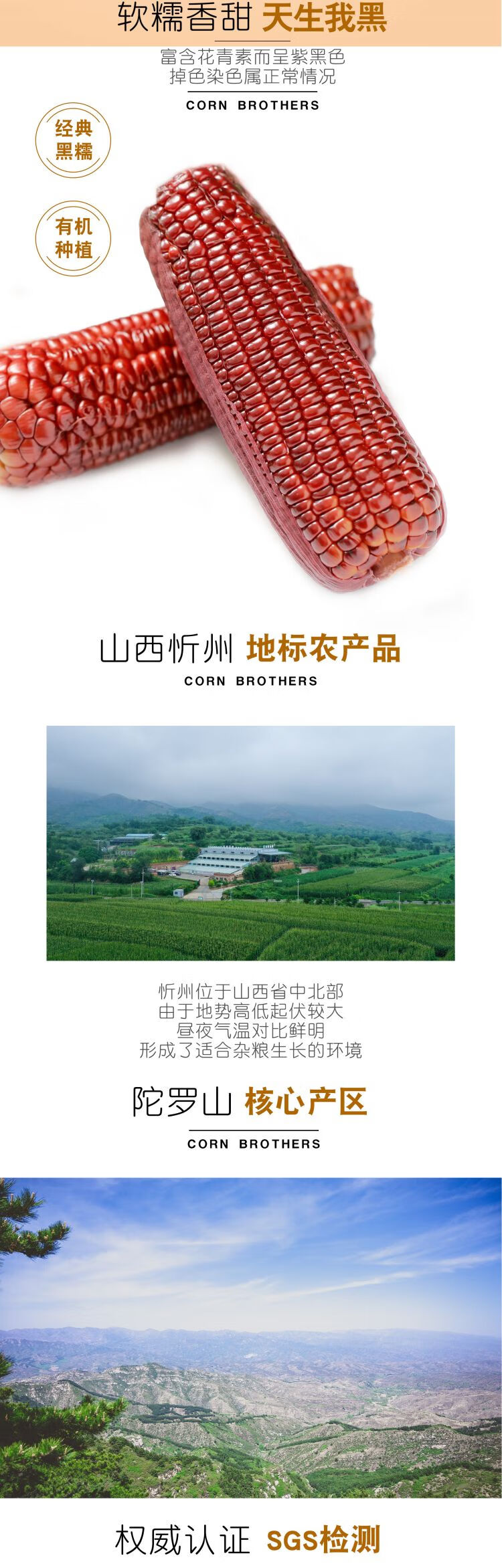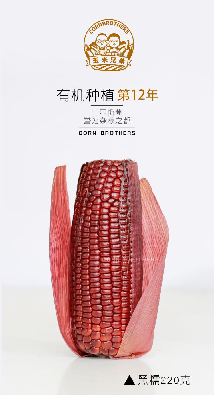 玉米兄弟 有机糯玉米有机认证,无添加(4黄玉米+4黑玉米)220g根x8根 自营