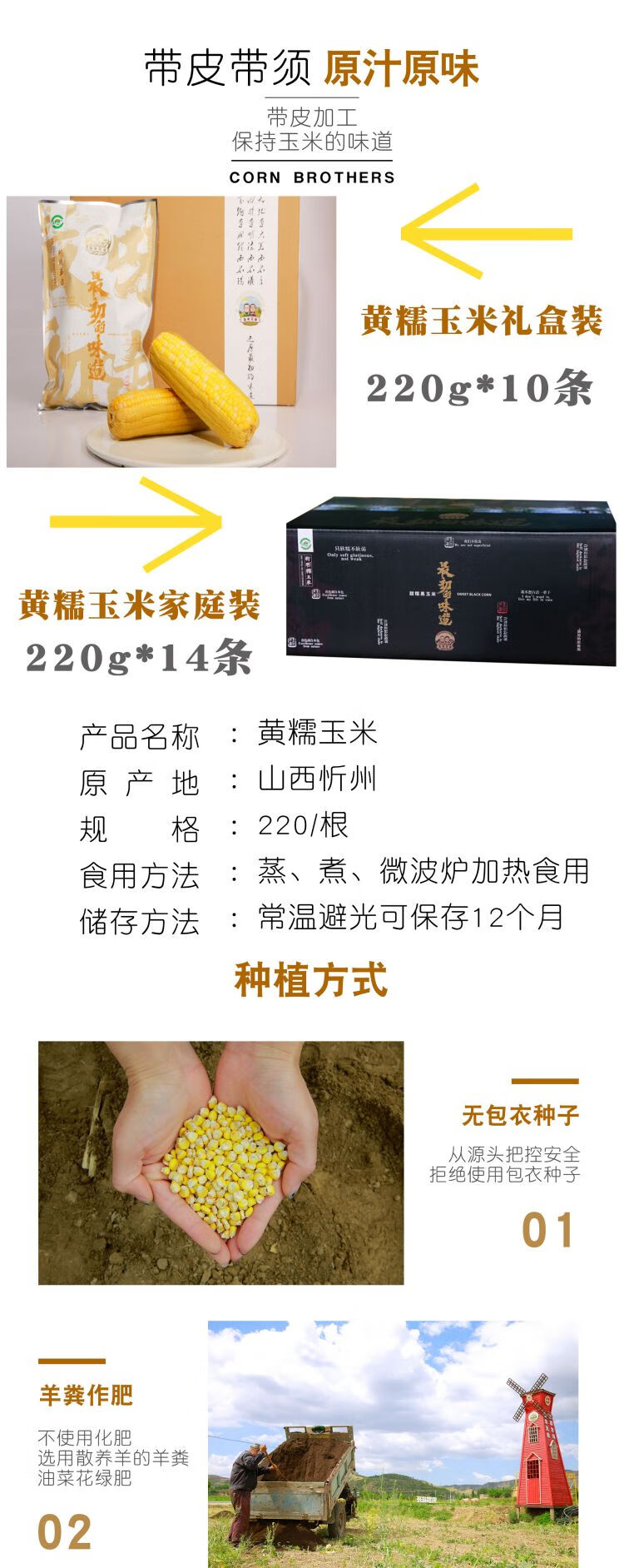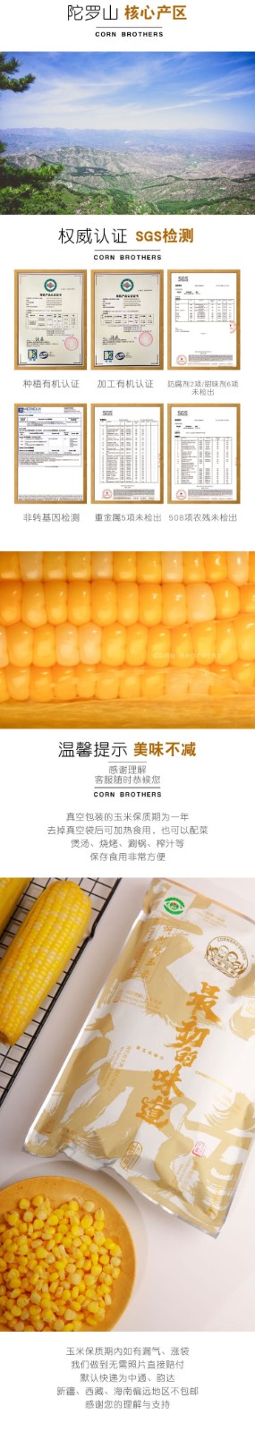 玉米兄弟 有机真空包装黄糯玉米有机认证,无添加220g根x14根 自营