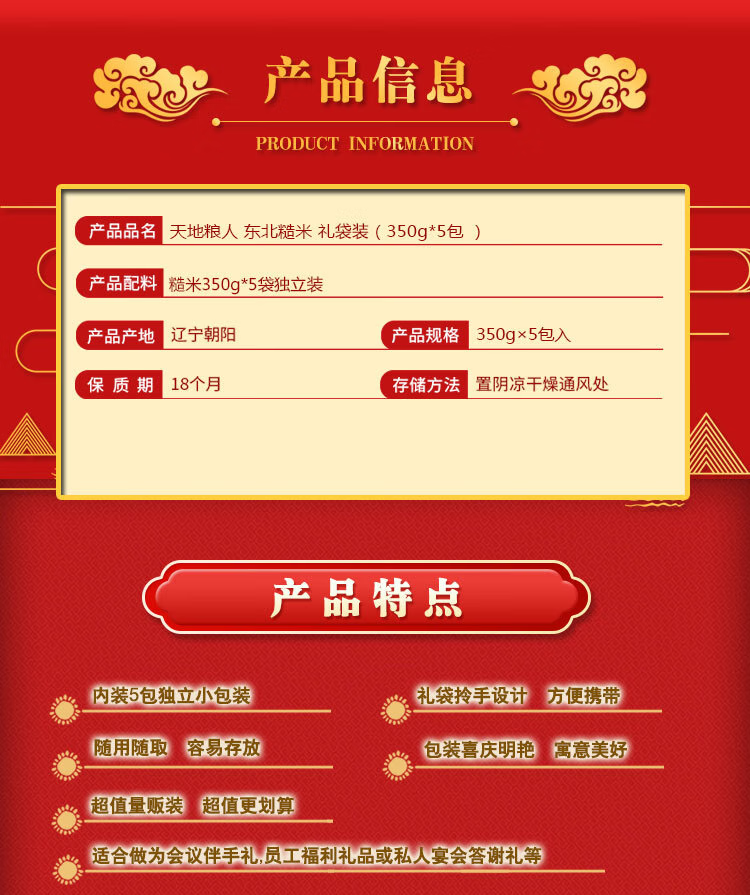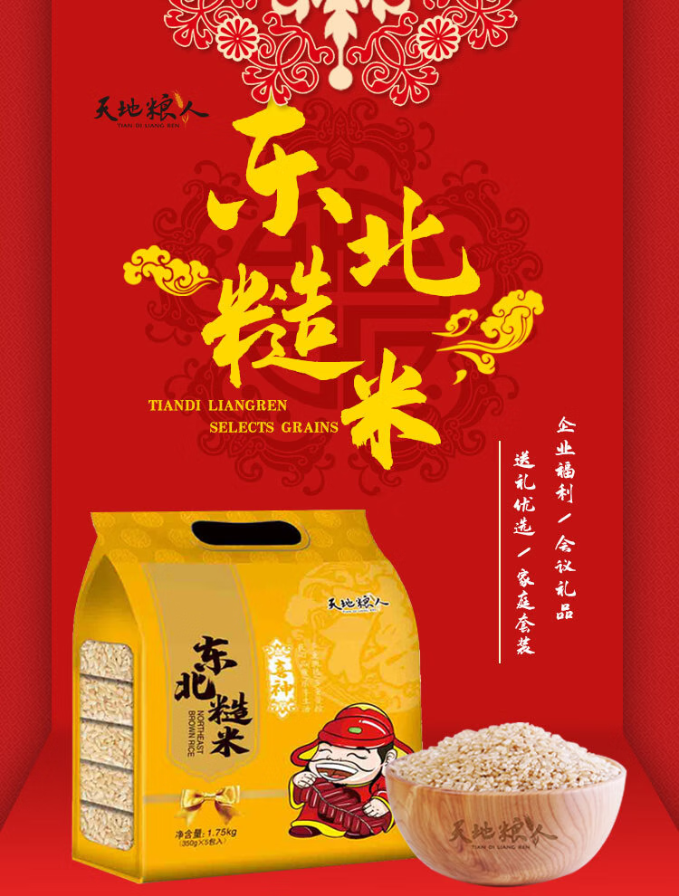 天地粮人 精品糙米 礼袋装(350g*5包 )精品糙米1750g 自营