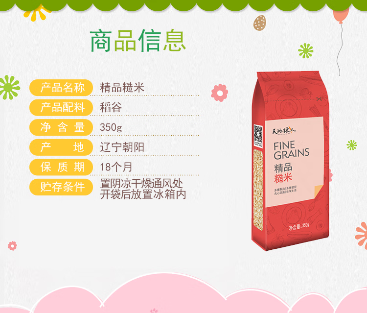 天地粮人 精品 糙米350g(含胚芽 东北 粗粮杂粮 大米伴侣) 自营