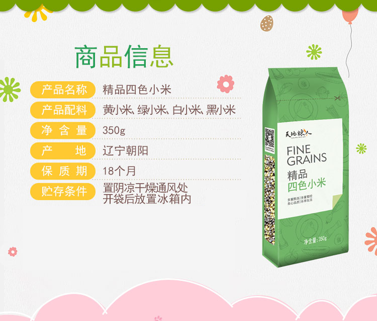 天地粮人 精品四色小米350g(黄小米 黑小米 绿小米 白小米 杂粮 ) 自营