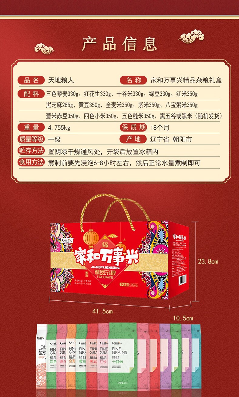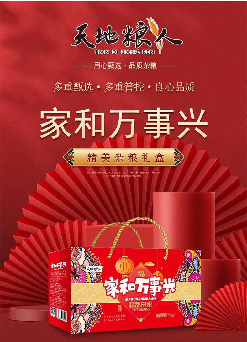 天地粮人 人之家和万事兴 十四种 甄致杂粮 礼盒4.755kg 自营