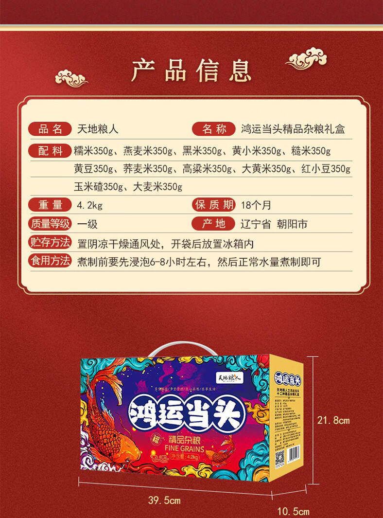 天地粮人 东北十谷米 礼袋装(350g*5包 )十谷米1750g