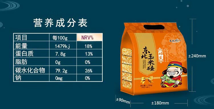 天地粮人 东北玉米碴 礼袋装(350g*5包 )玉米碴 1750g 自营