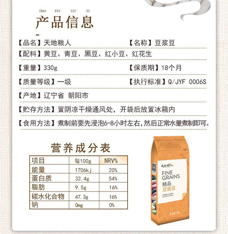 天地粮人 精品 豆浆豆330g黄豆 红小豆 青豆 黑豆 红花生等杂粮 自营