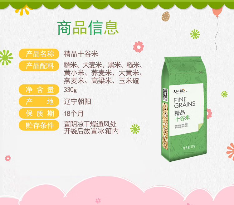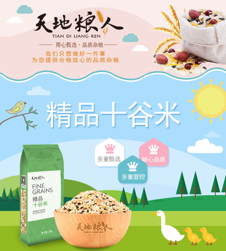 天地粮人 精品 小米 黑米 糯米 燕麦 糙米等杂粮 可与大米搭配 十谷米330g