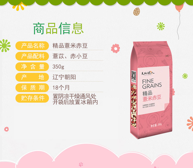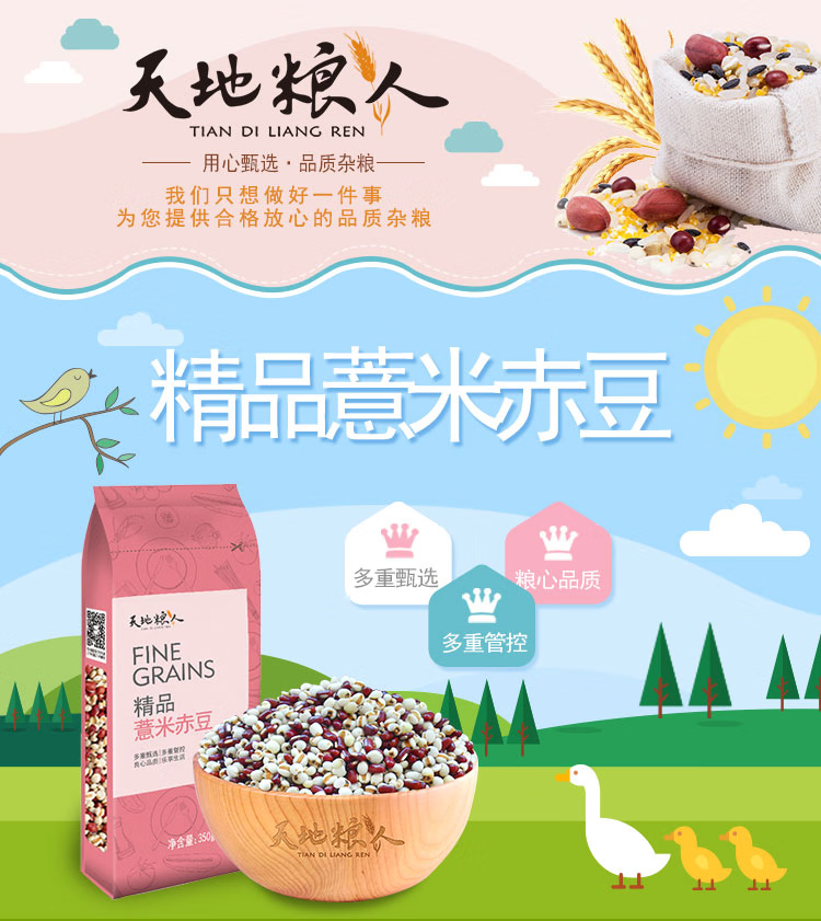 天地粮人 精品真空装 薏仁米 赤小豆 红豆薏米 杂粮 薏米赤豆350g 自营