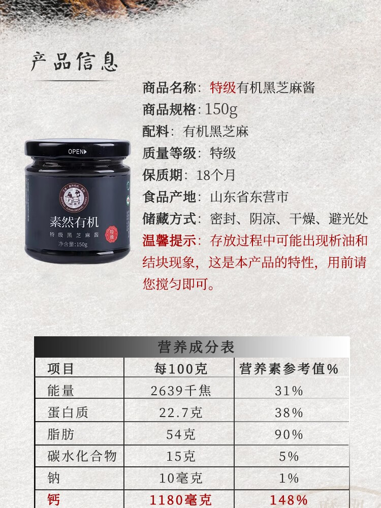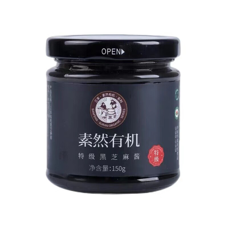 三丰 特级有机黑芝麻酱 纯小磨麻汁调味品 拌菜拌饭酱料 150g 自营