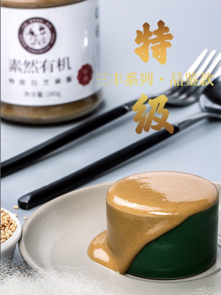 三丰 特级有机白芝麻酱 纯小磨麻汁调味品 拌菜拌饭酱料 150g