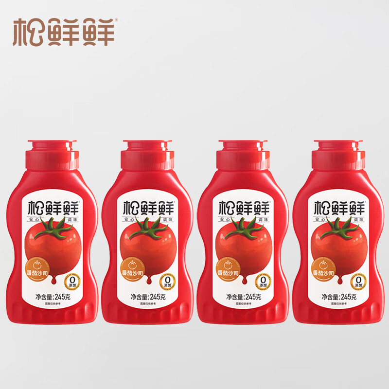 松鲜鲜 番茄沙司 番茄酱 面包三明治涂抹酱 245g×4瓶 自营