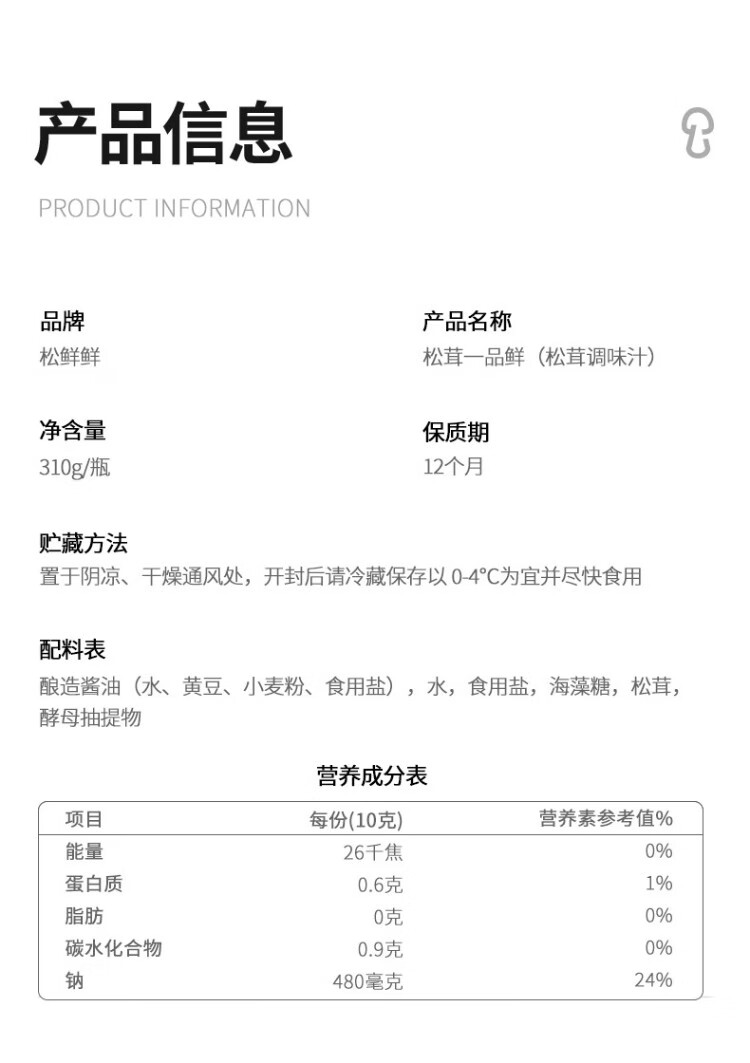 松鲜鲜 松茸一品鲜 代替酱油生抽凉拌点蘸调味品汁调料不加防腐剂310g×2