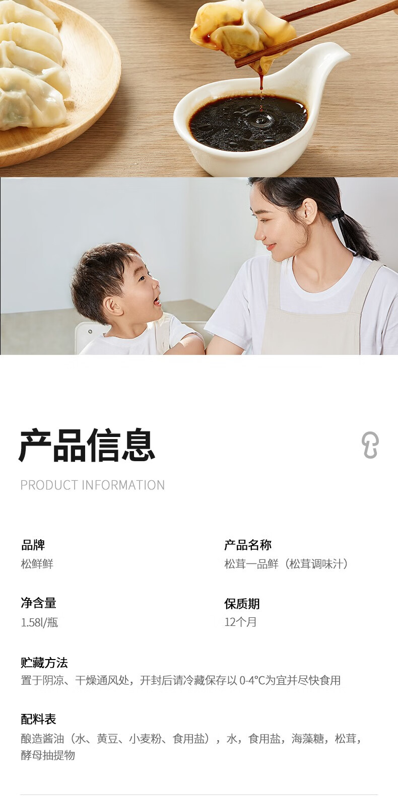 松鲜鲜 松茸一品鲜 代替酱油生抽凉拌点蘸调味品汁调料不加防腐剂1.58L