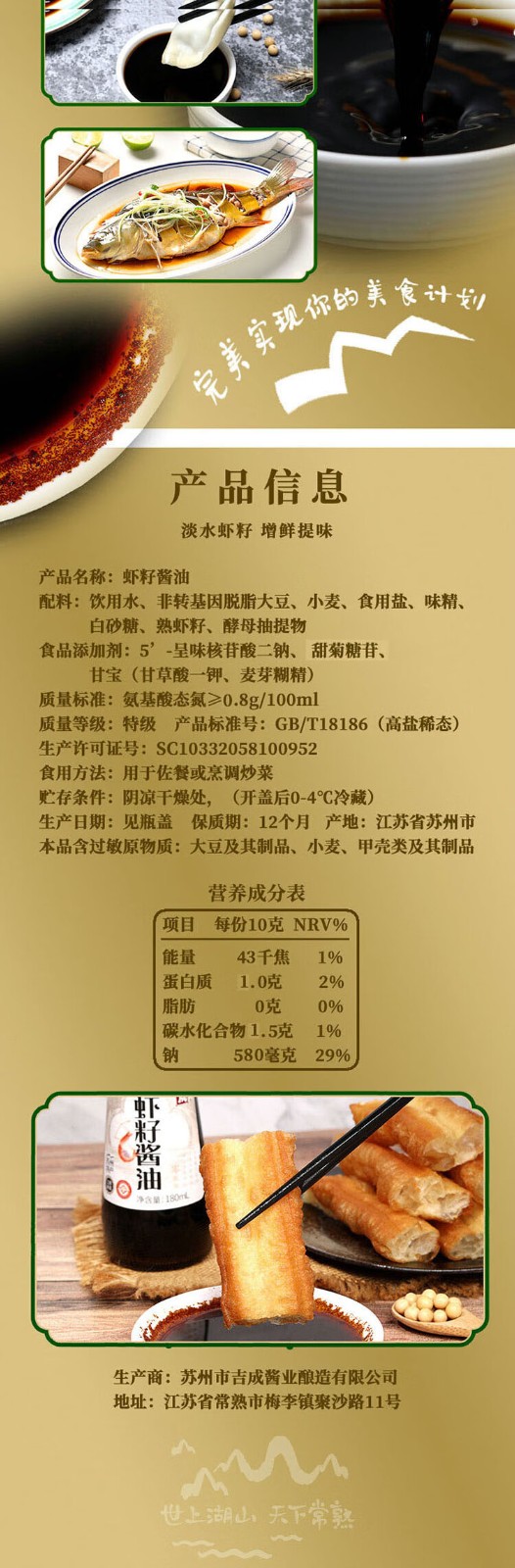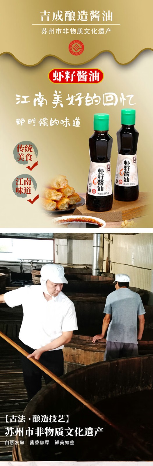 吉成 虾籽酱油苏州虾仔阳春面酱油拌面生抽虾子酱油180mlx2瓶 自营