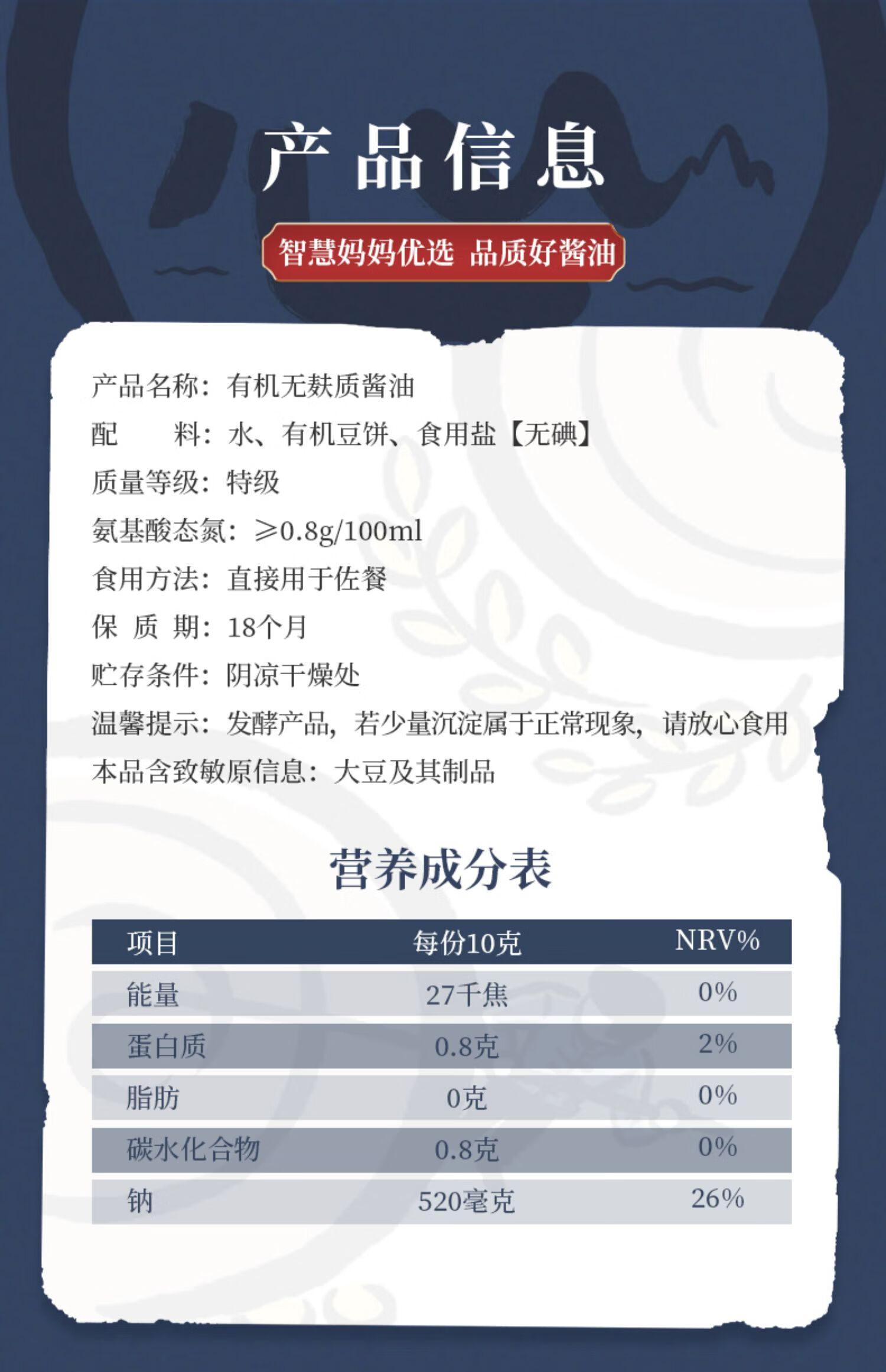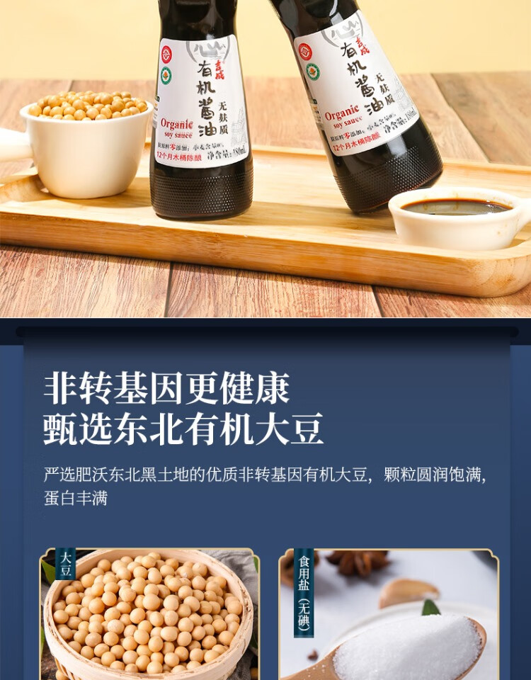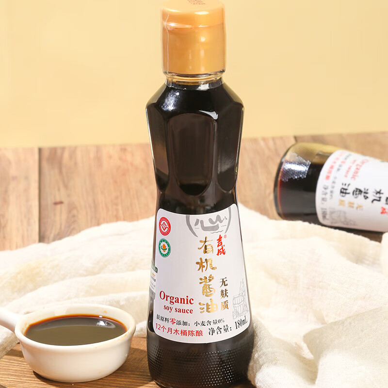 吉成 有机无添加小麦儿童酱油拌饭调味酱油365天酿造无麸质生抽180ml×2 自营