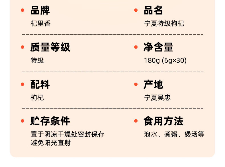 杞里香 宁夏头茬枸杞 养生滋补枸杞茶 出塞特级枸杞 180g 30袋 /盒 自营