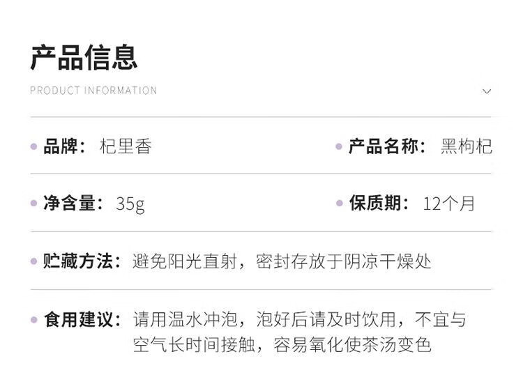杞里香 宁夏头茬黑枸杞 养生滋补枸杞茶 大果黑枸杞 35g/袋 5袋/包