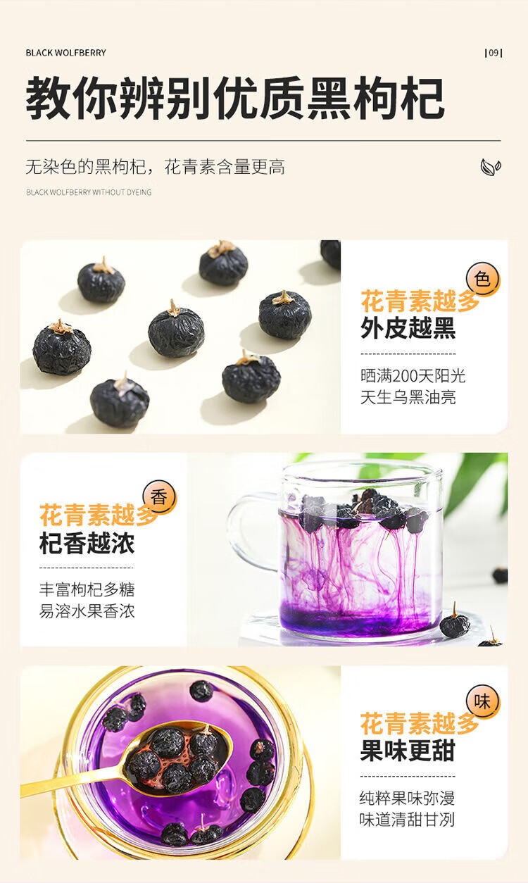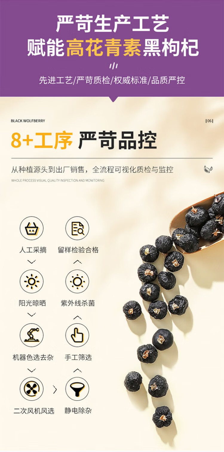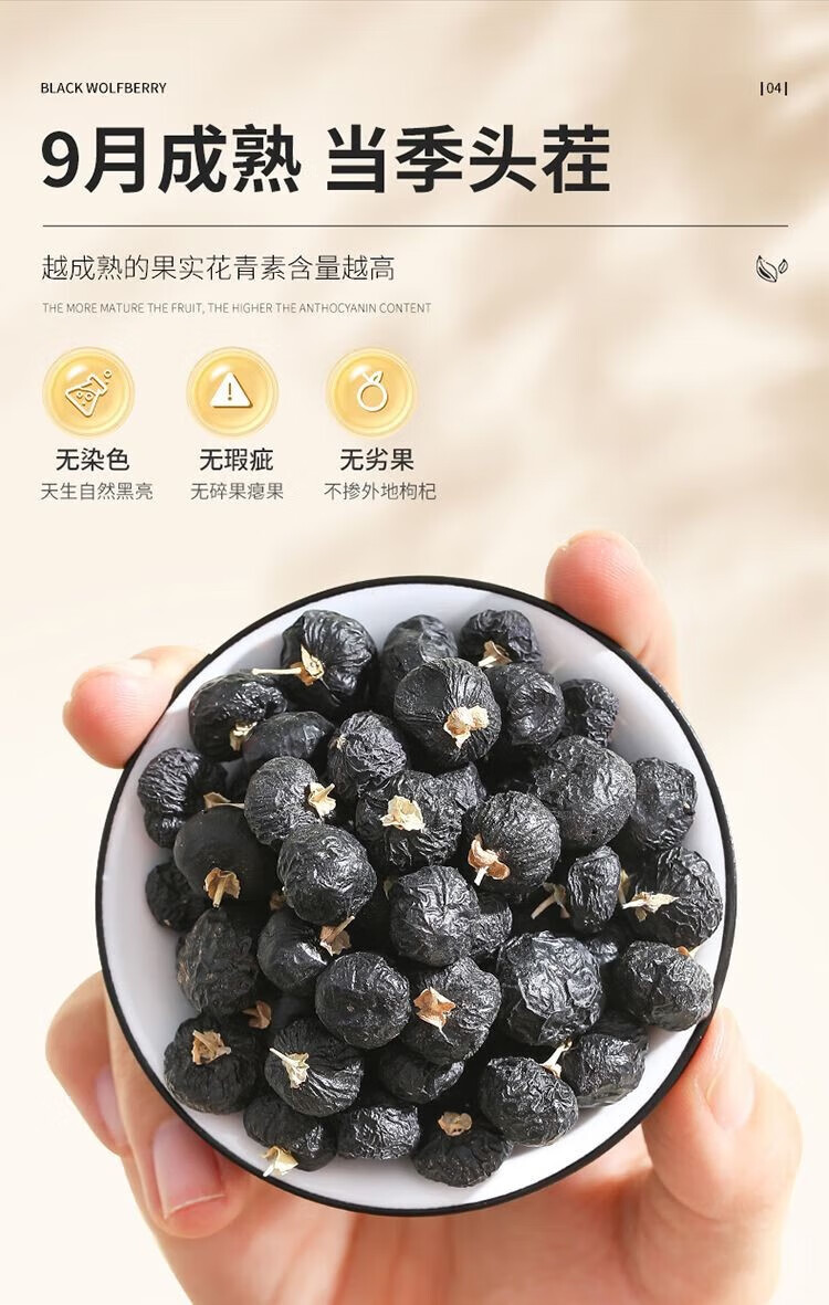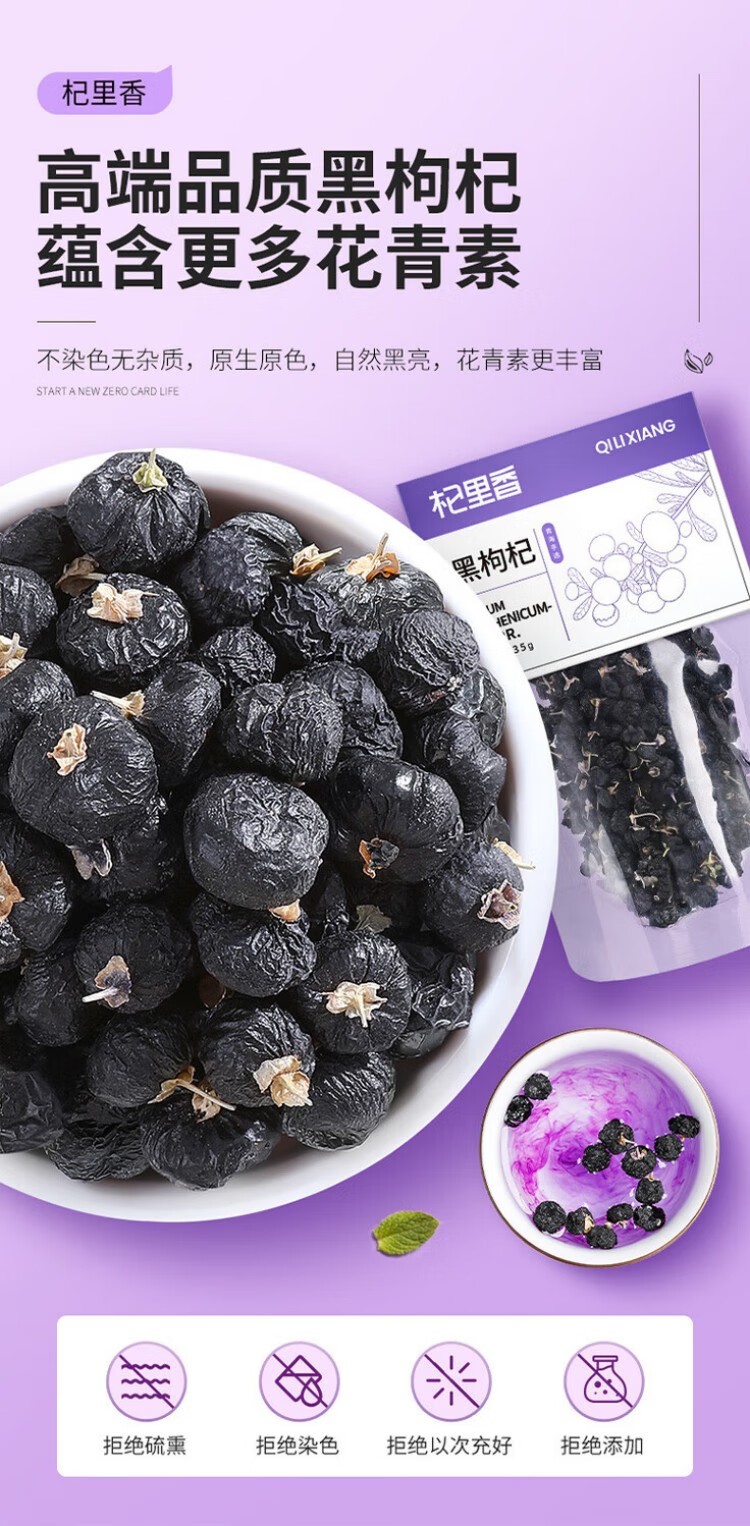 杞里香 宁夏头茬黑枸杞 养生滋补枸杞茶 1号黑枸杞紫盒装 80g/盒