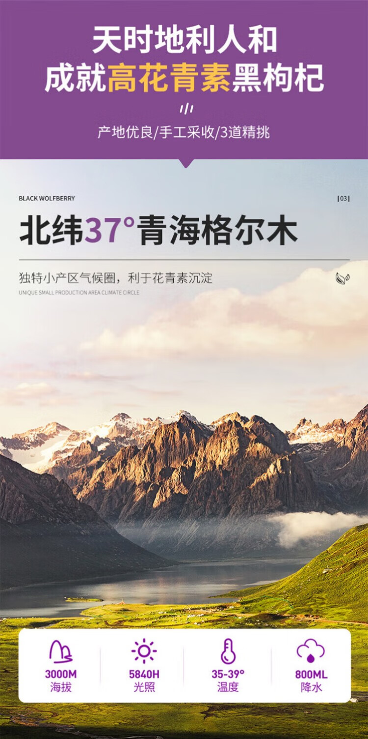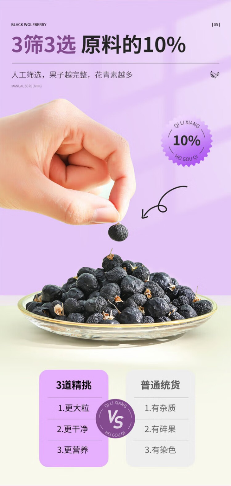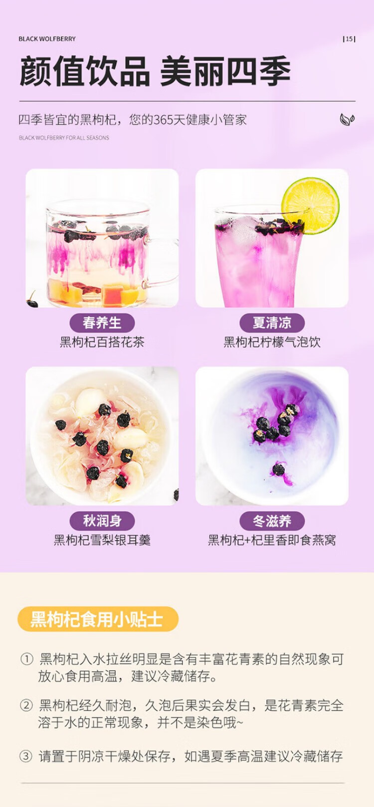 杞里香 宁夏头茬黑枸杞 养生滋补枸杞茶 1号黑枸杞紫盒装 80g/盒