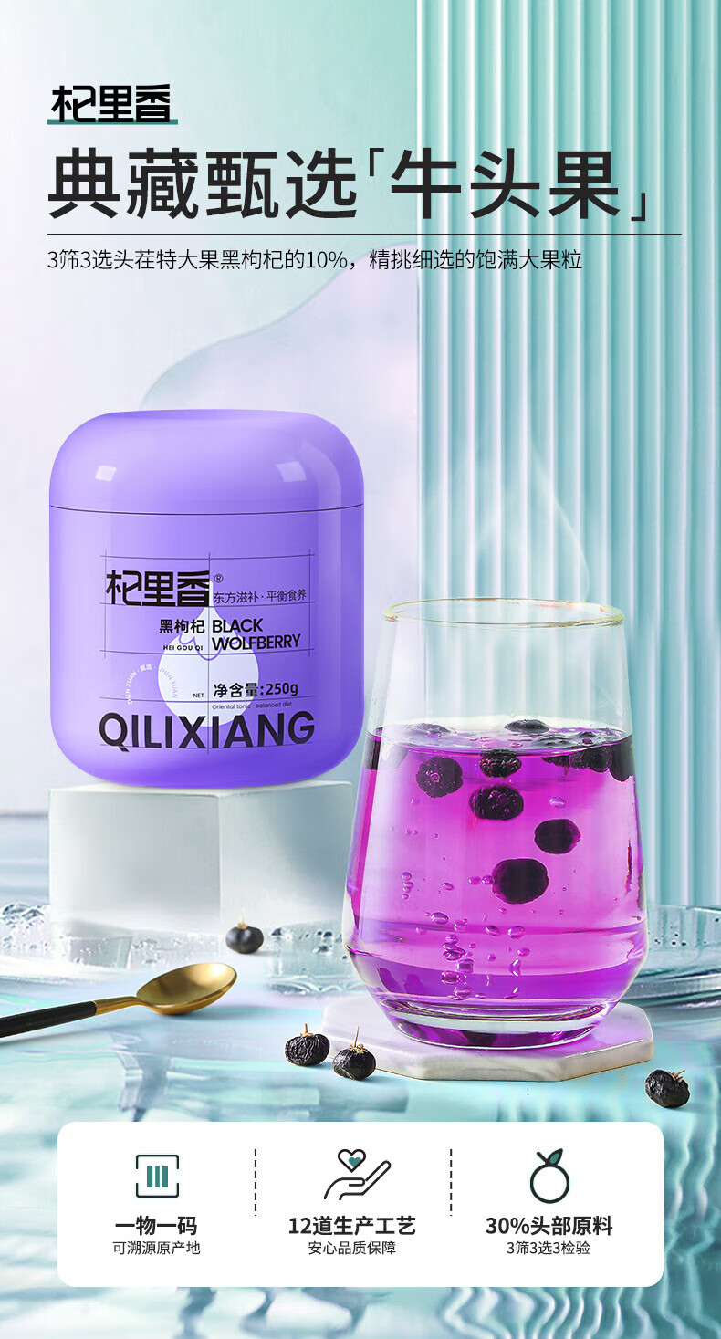 杞里香 宁夏头茬黑枸杞 养生滋补枸杞茶 圆罐牛头果黑枸杞250g/罐 自营