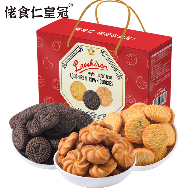 佬食仁 皇冠曲奇(礼盒) 丹麦风味网红零食大礼包 520g/约20包 1箱 DF01