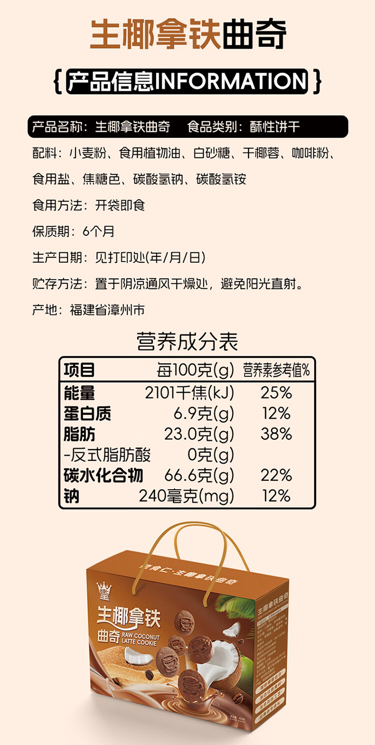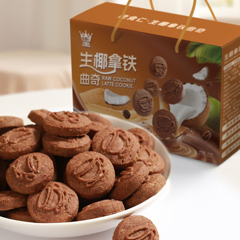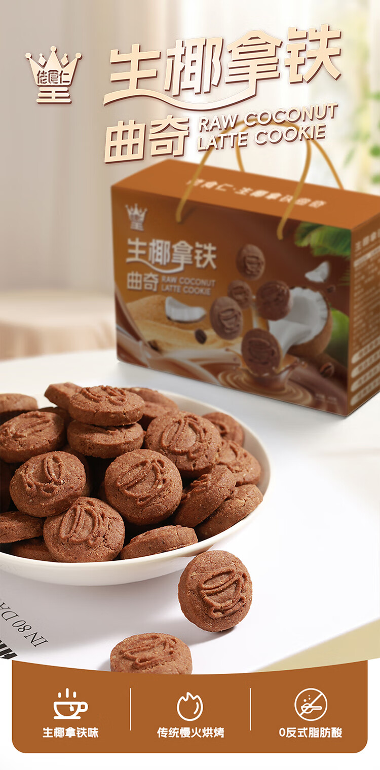 佬食仁 生椰拿铁曲奇礼盒 礼盒装休闲零食 400g/约20包 1箱 DF01 自营