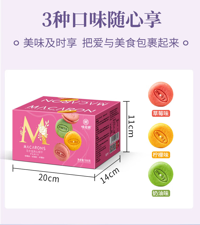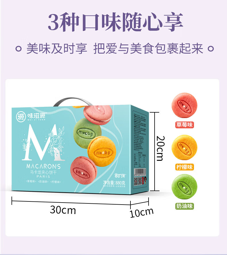 味滋源 马卡龙夹心饼干白桃味酸奶味小包装甜点心 马卡龙饼干 500g×2箱