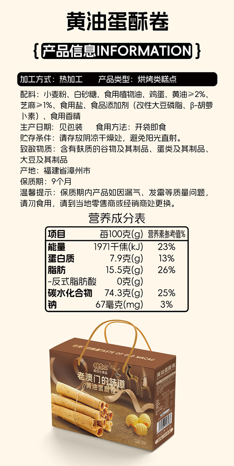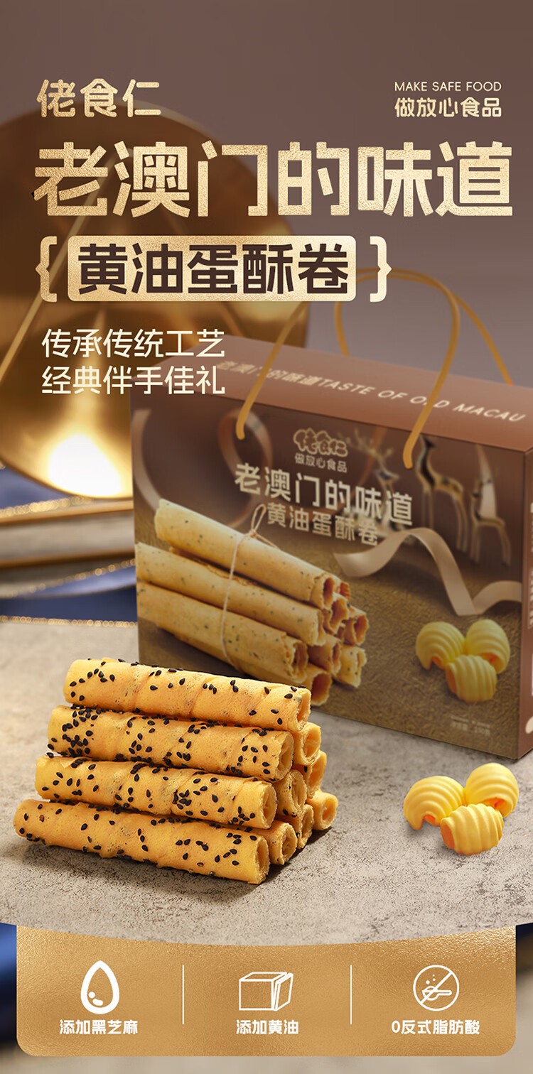 佬食仁 老澳门的味道黄油蛋酥卷礼盒 老澳门蛋卷230g 84根/14包 1箱 DF01