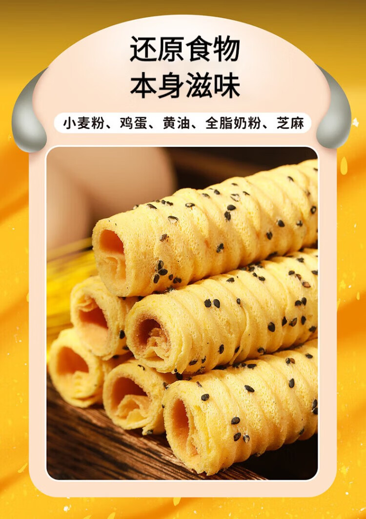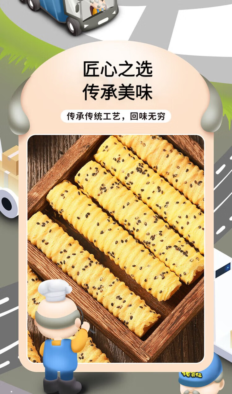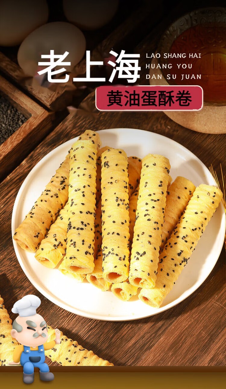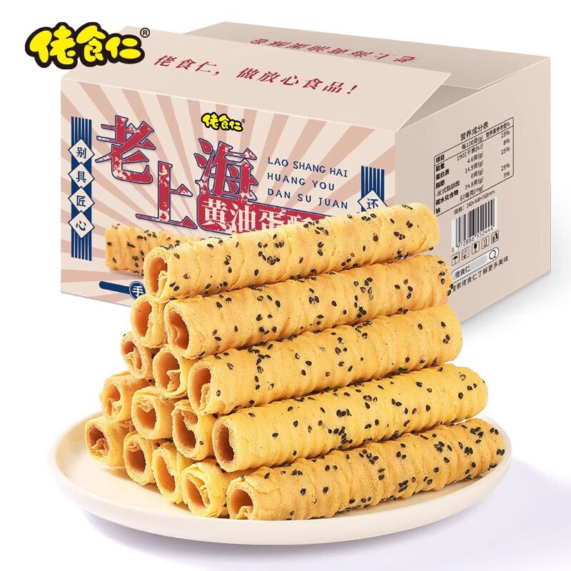 佬食仁 老上海黄油蛋酥卷 传统手工蛋卷芝麻早餐糕点 500g×1箱 约50根