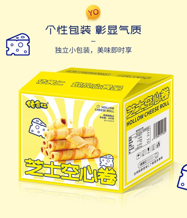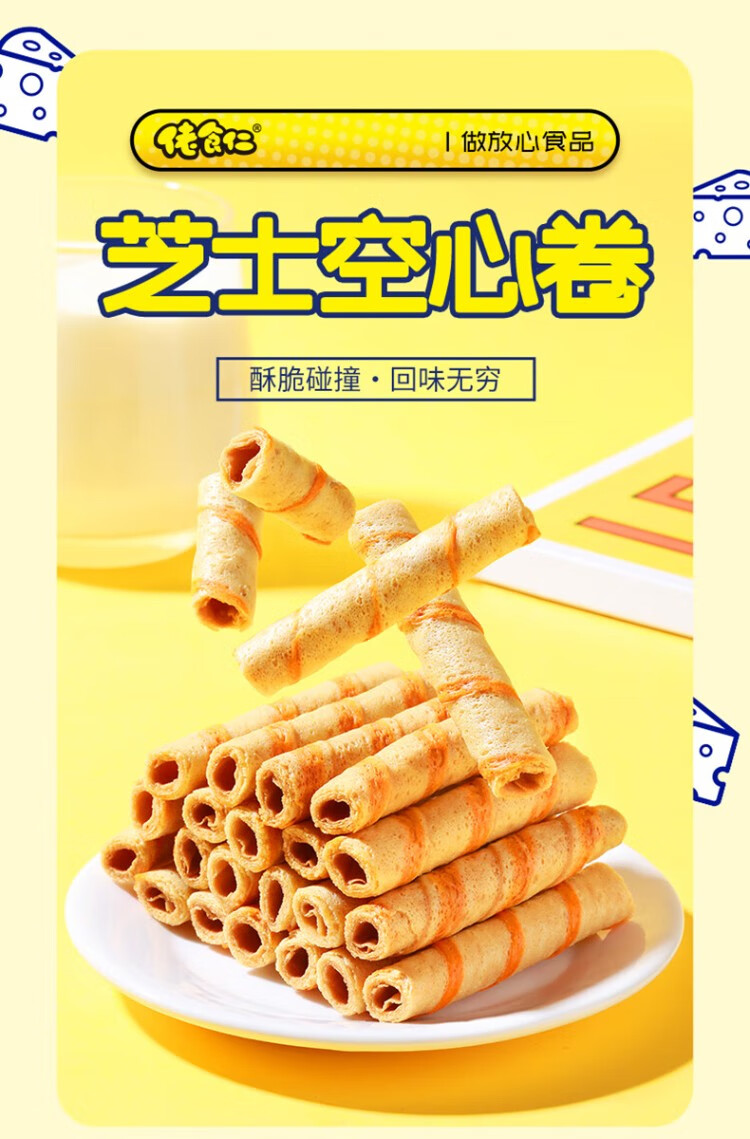 佬食仁 芝士空心卷 鸡蛋卷无夹心零食下午茶 200g×1箱(10包) 自营