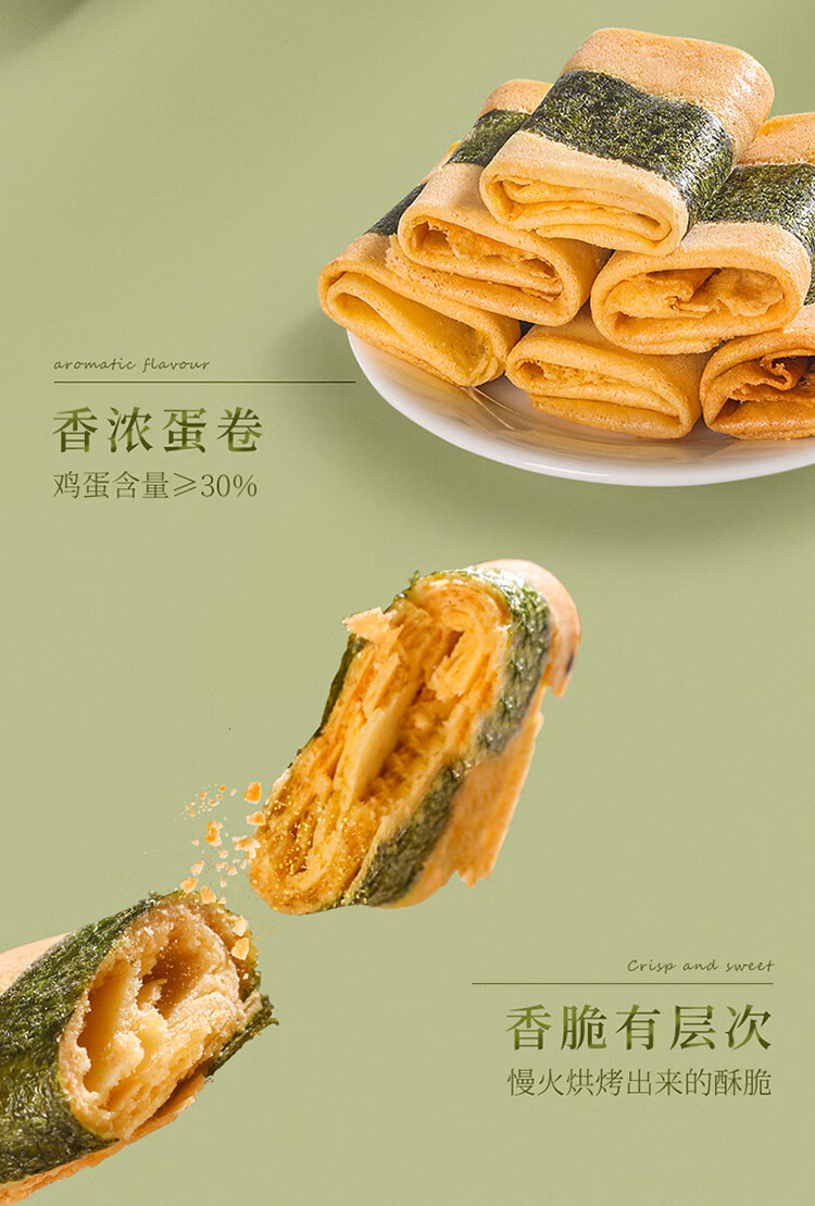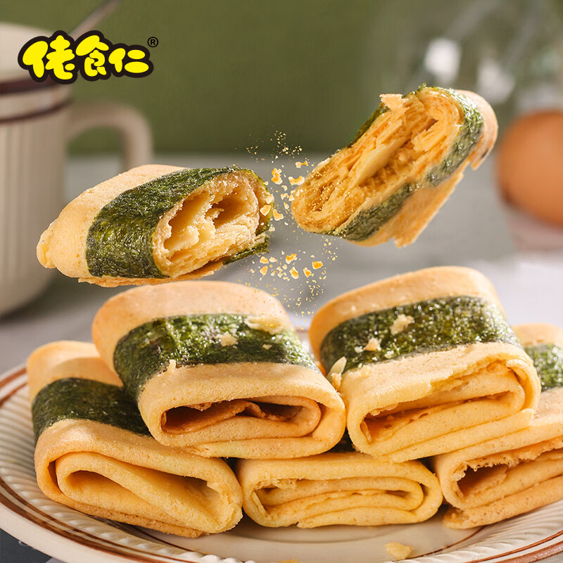 佬食仁 海苔凤凰卷 饼干零食手工糕点休闲食品 500g/约30枚 1箱 DF30 自营