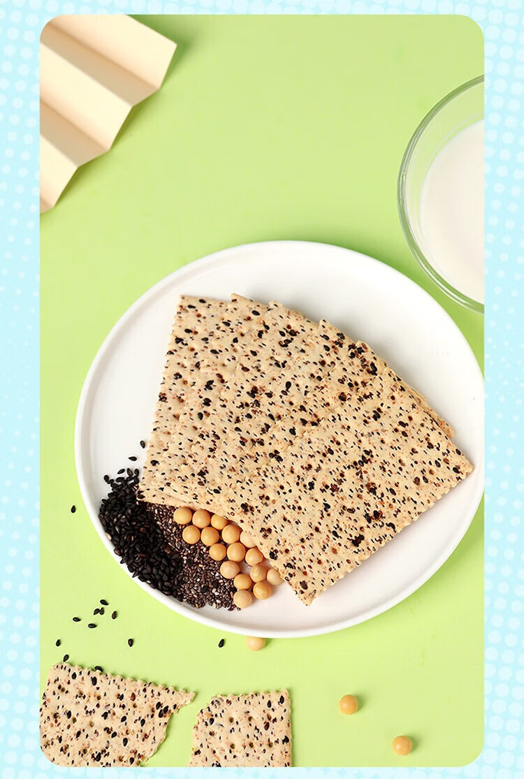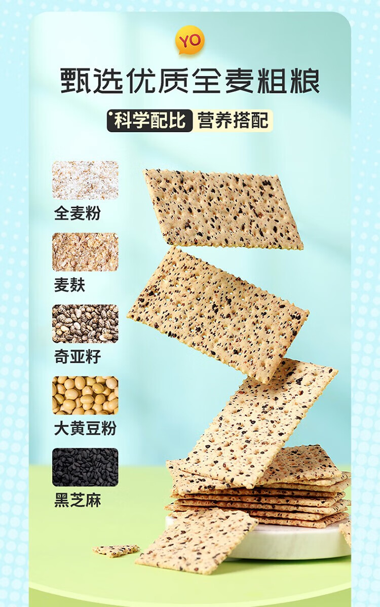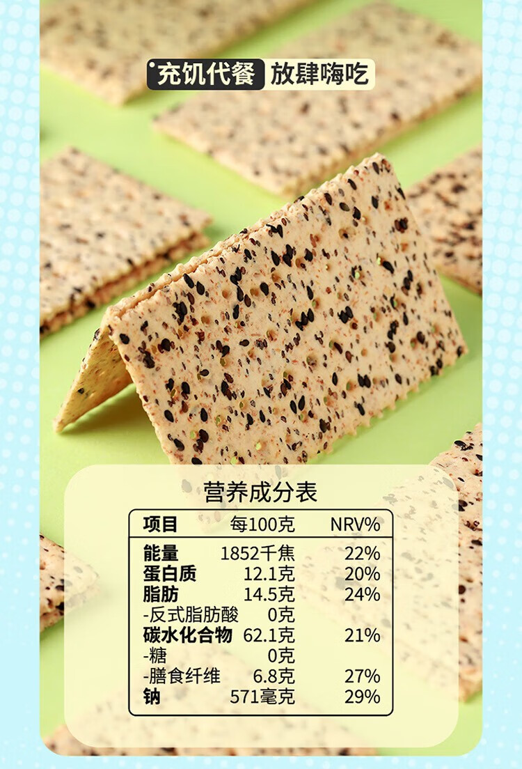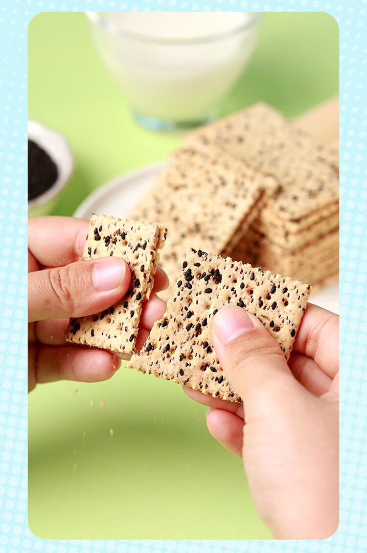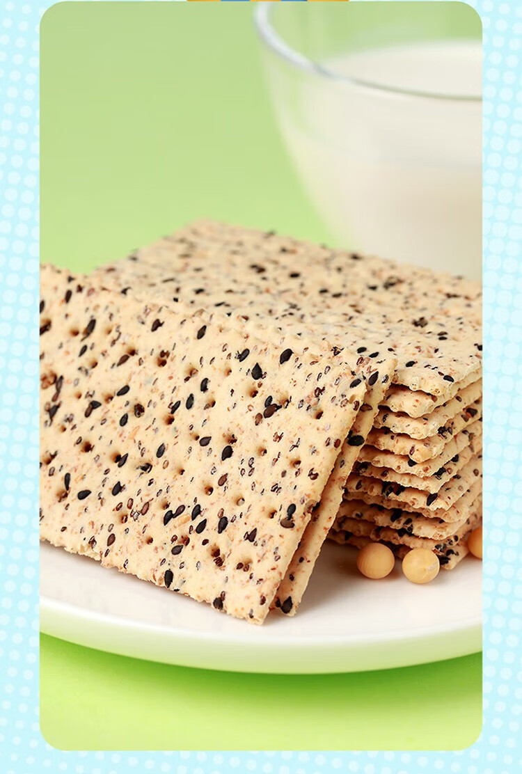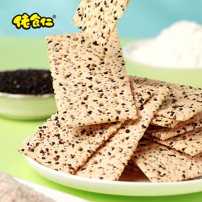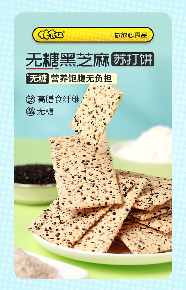 佬食仁 无糖黑芝麻苏打饼 0添加蔗糖粗粮 饱腹代餐 500g×1箱(90片)