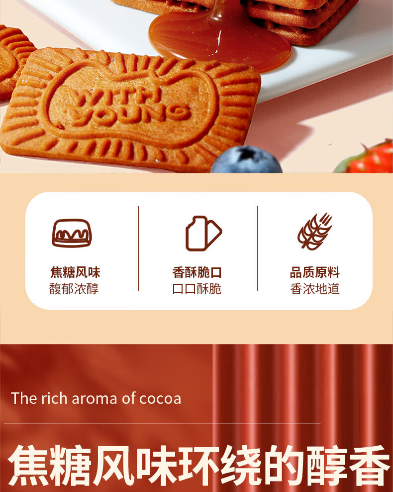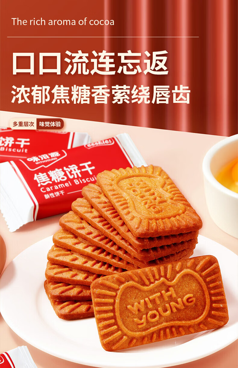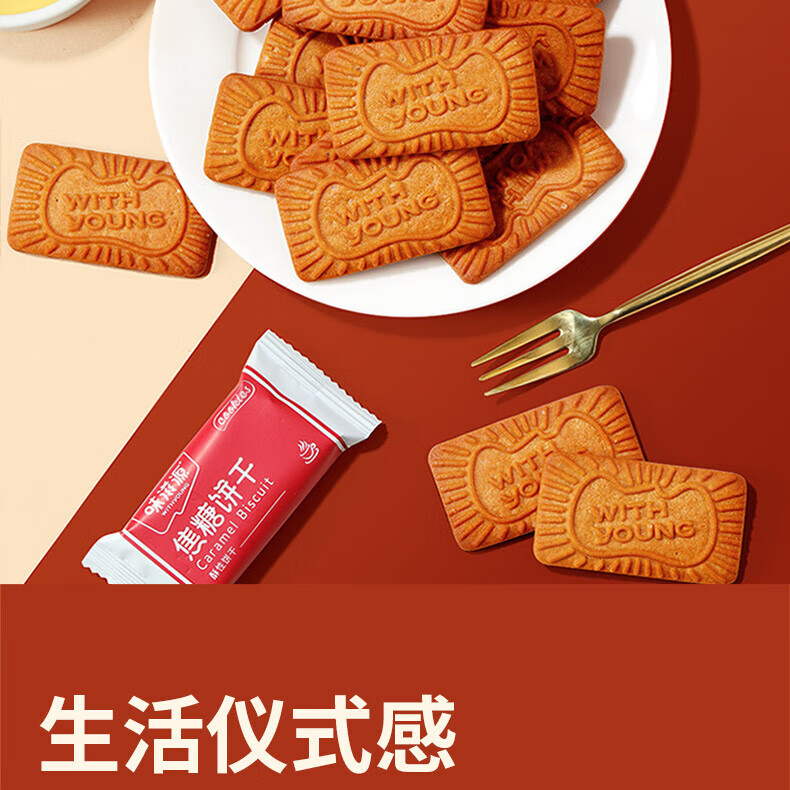 味滋源 焦糖饼干黑糖味比利时风味早餐饼干休闲零食 焦糖饼干500g×2箱 自营
