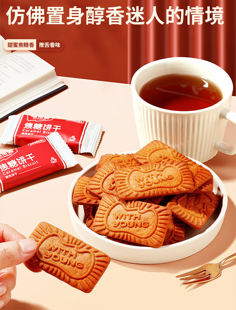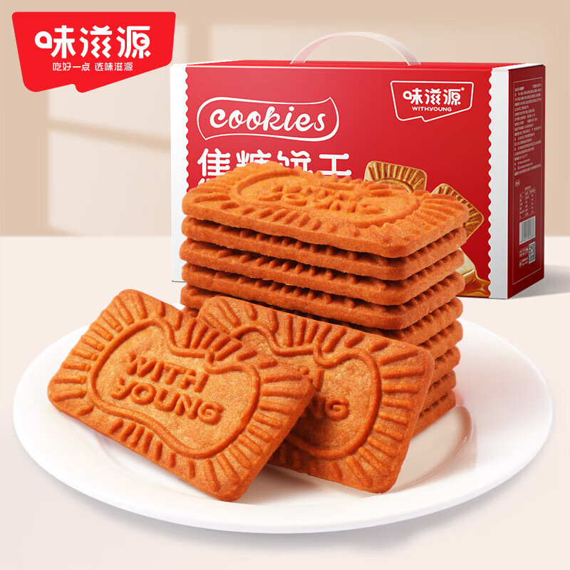 味滋源 焦糖饼干黑糖味比利时风味早餐饼干休闲零食 焦糖饼干880g×2箱 自营