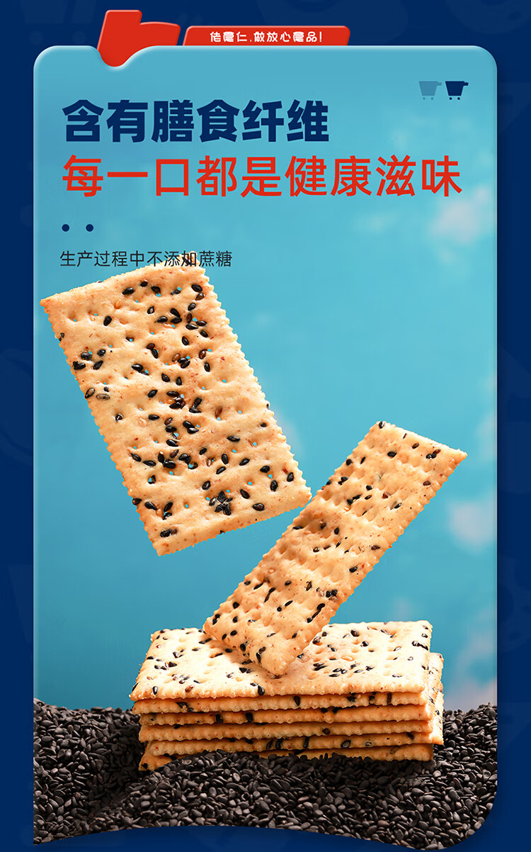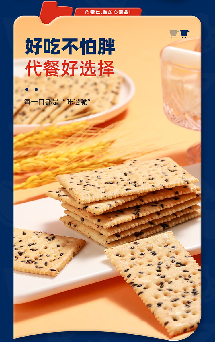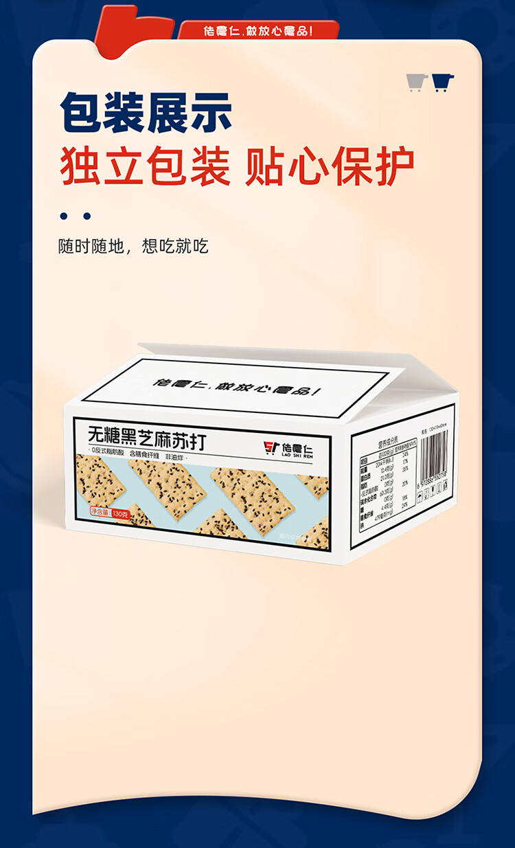佬食仁 无糖黑芝麻饼 膳食纤维控糖人零食 390g/约90片 1箱 DF01 自营