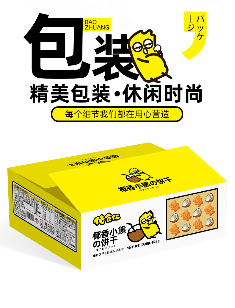 佬食仁 椰香小熊饼干 早餐曲奇数字饼干零食 400g/约16包 1箱 DF01 自营
