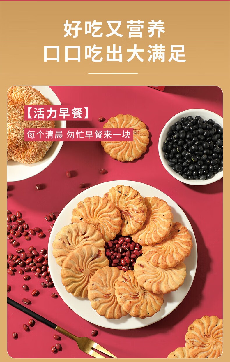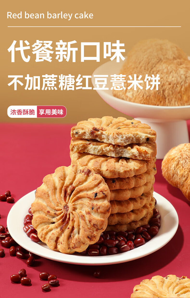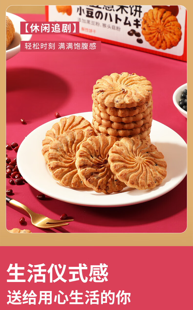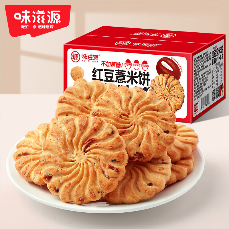 味滋源 红豆薏米饼全麦饼干杂粮粗粮无蔗糖早餐饼干 红豆薏米饼408g×2箱 自营