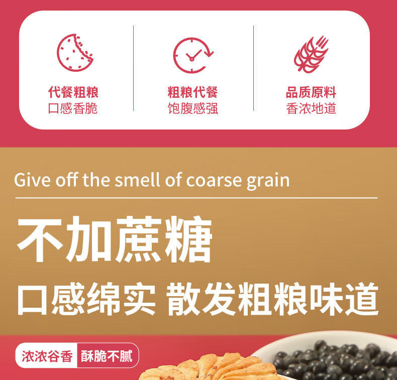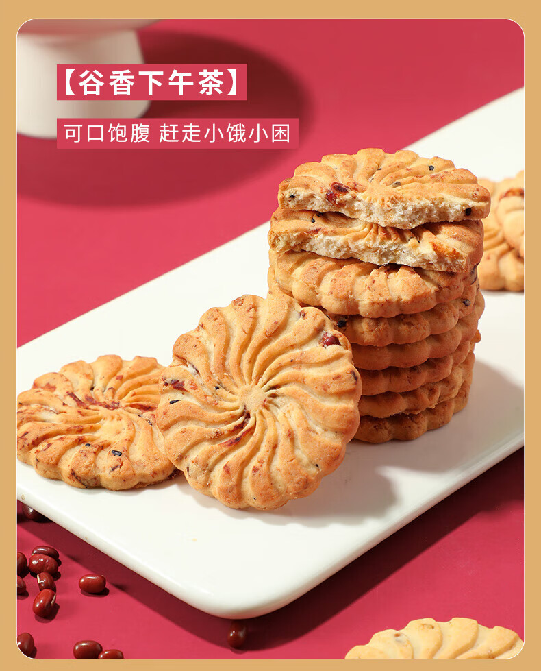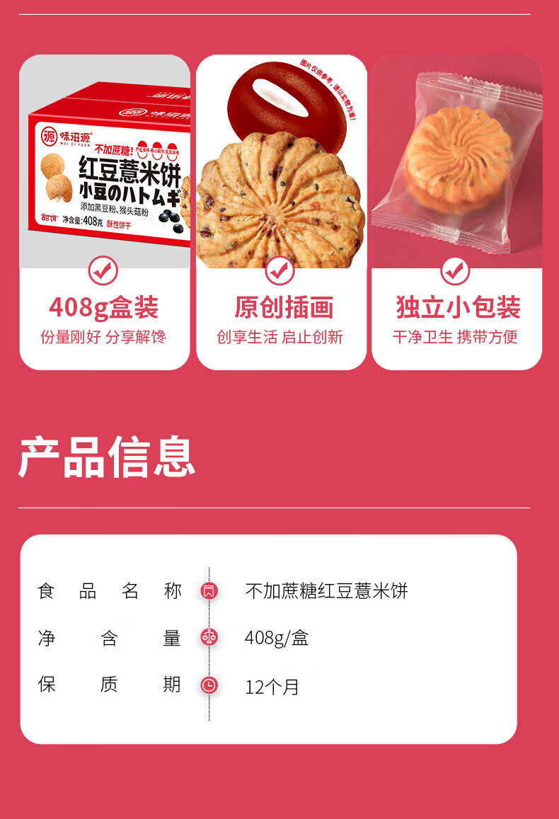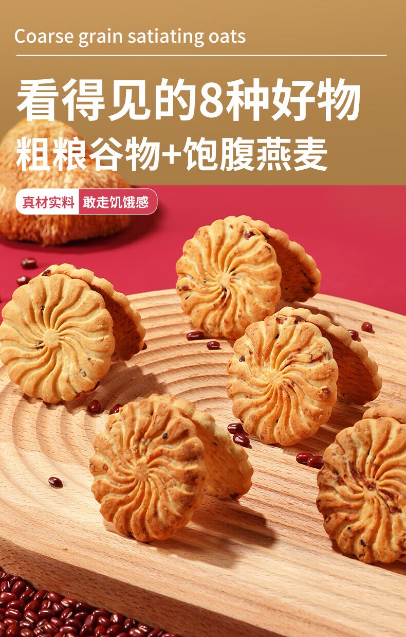 味滋源 红豆薏米饼全麦饼干杂粮粗粮无蔗糖早餐饼干 红豆薏米饼408g×2箱 自营