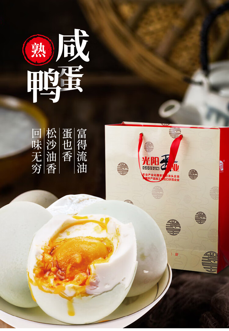 光阳蛋业(GOOSUN) 熟咸鸭蛋 8枚×2盒(1盒520g) 自营