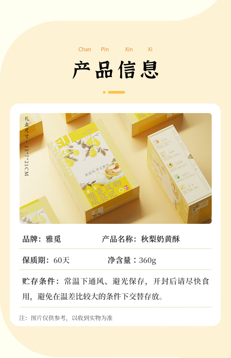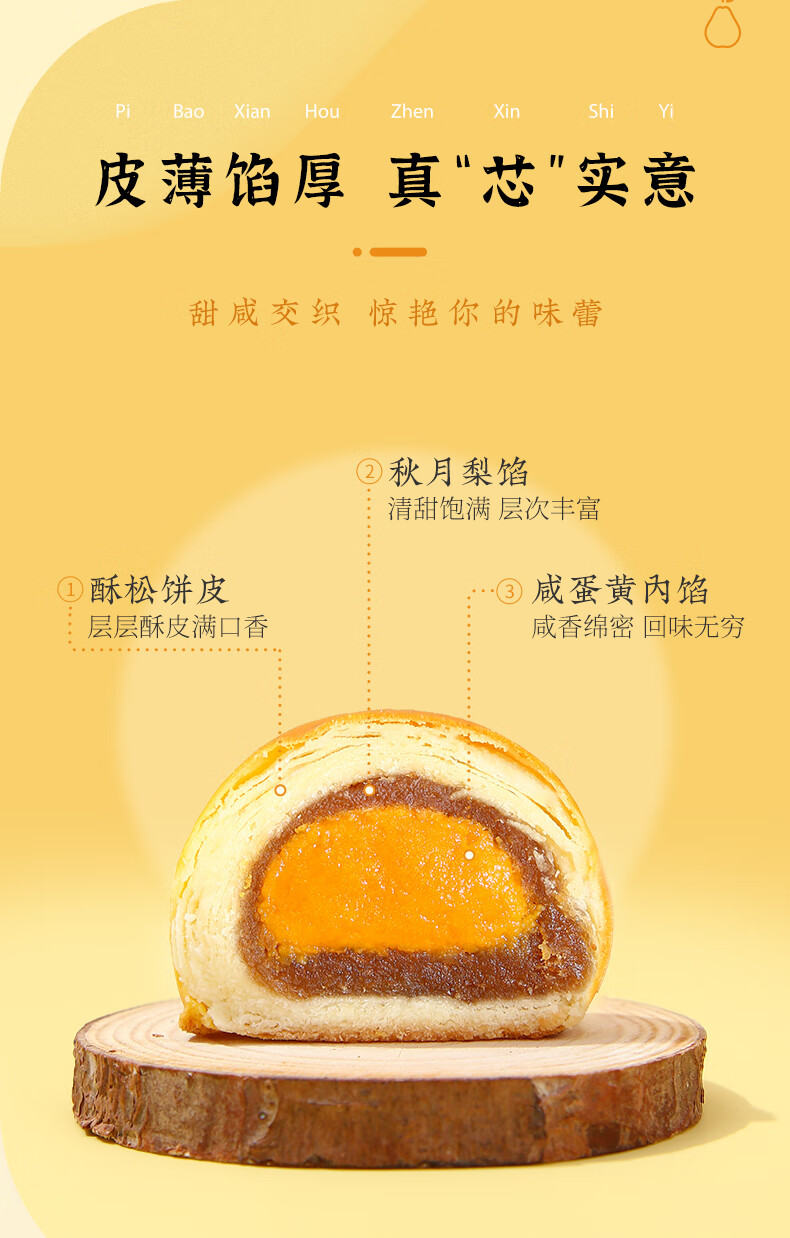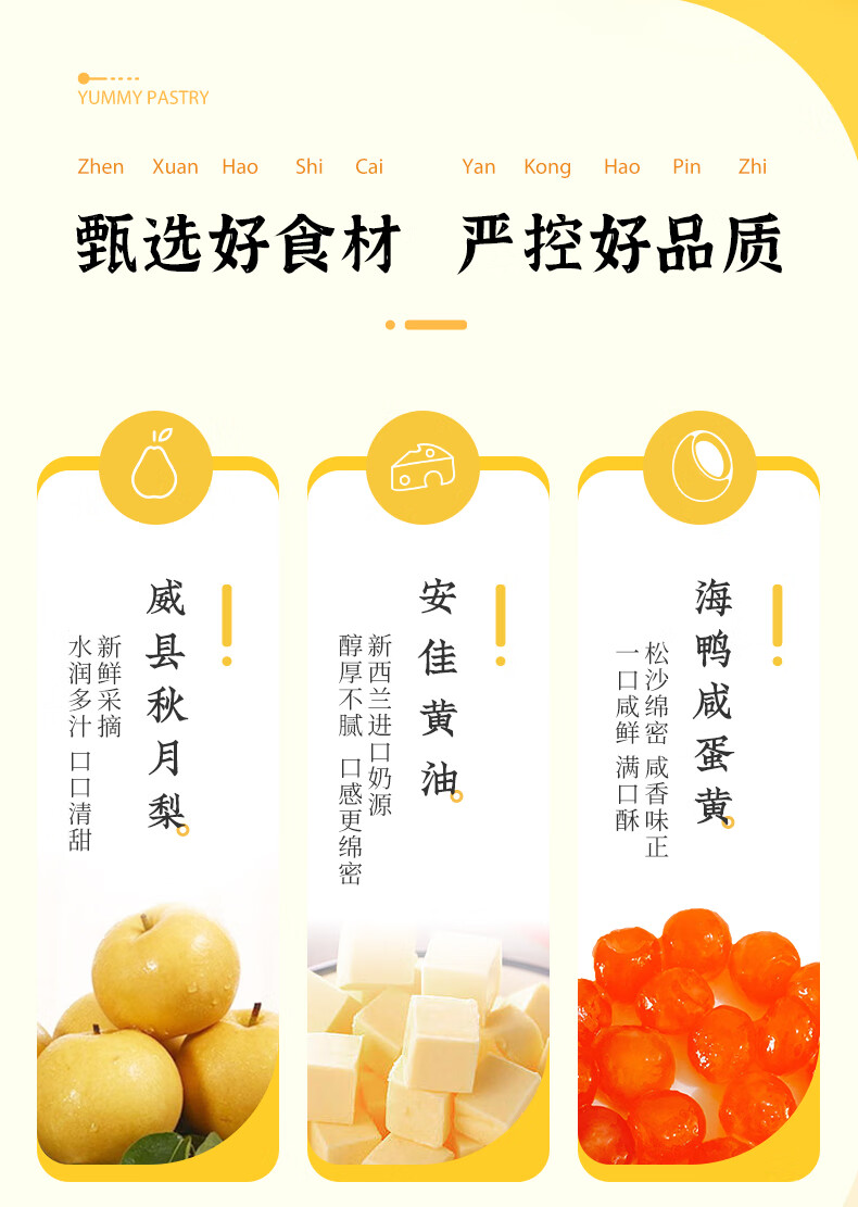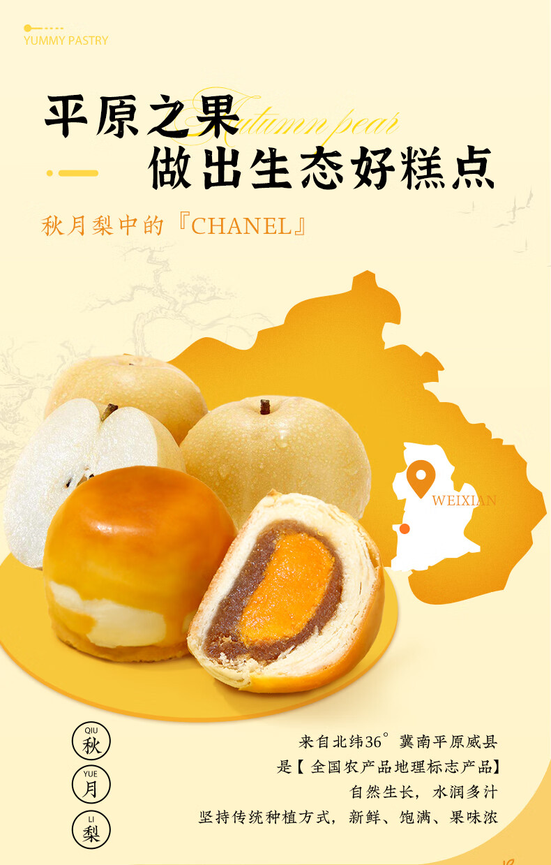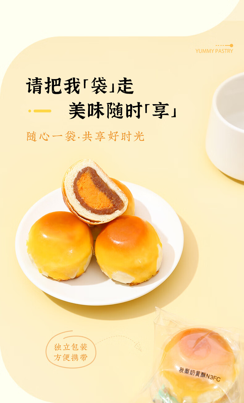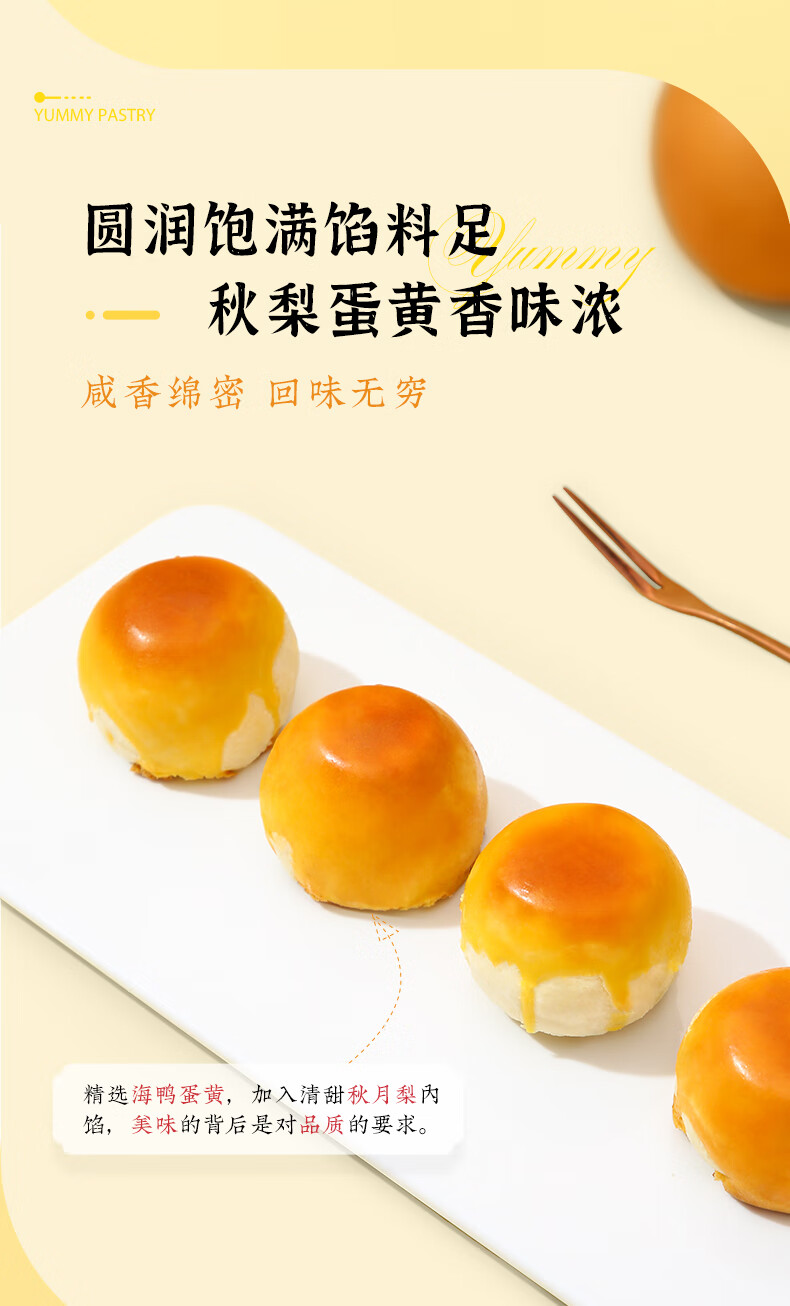 雅觅 秋梨奶黄酥 手工蛋黄酥 糕点点心 360g×1盒(6枚) 自营