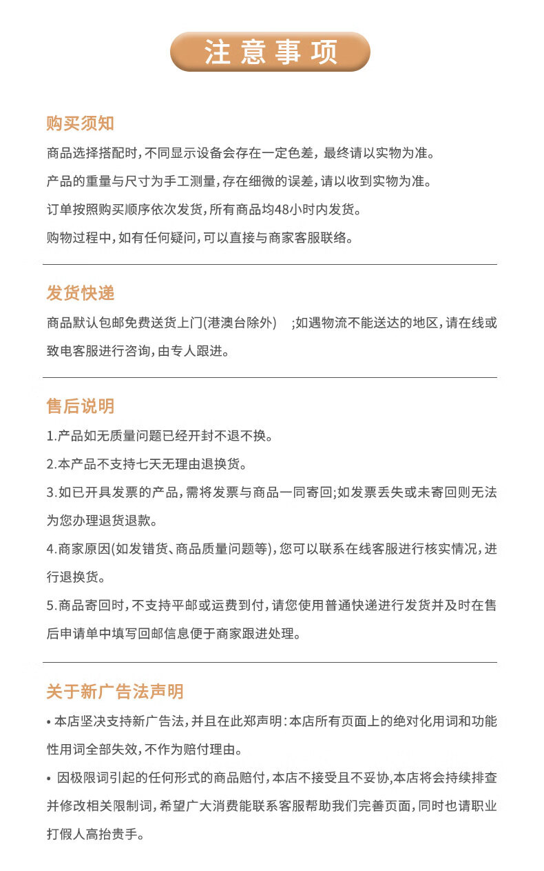 温馨提示 本商品无质量问题不支持退换货