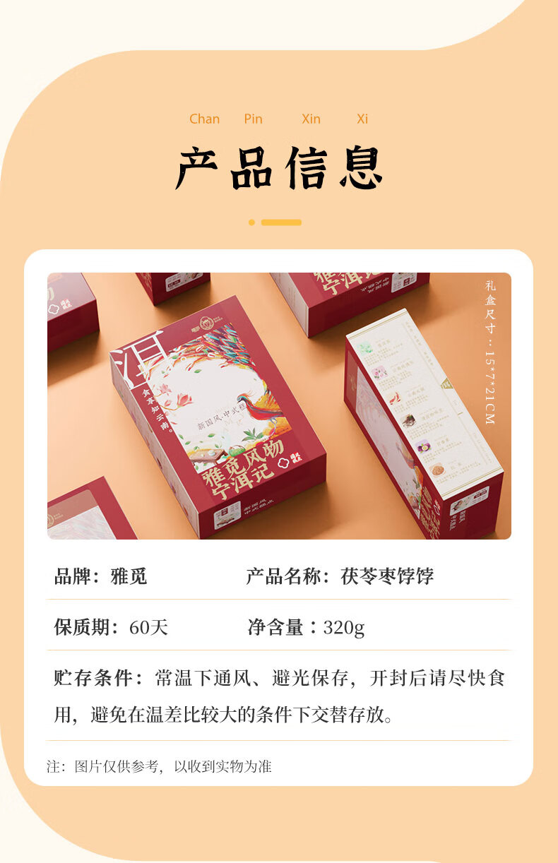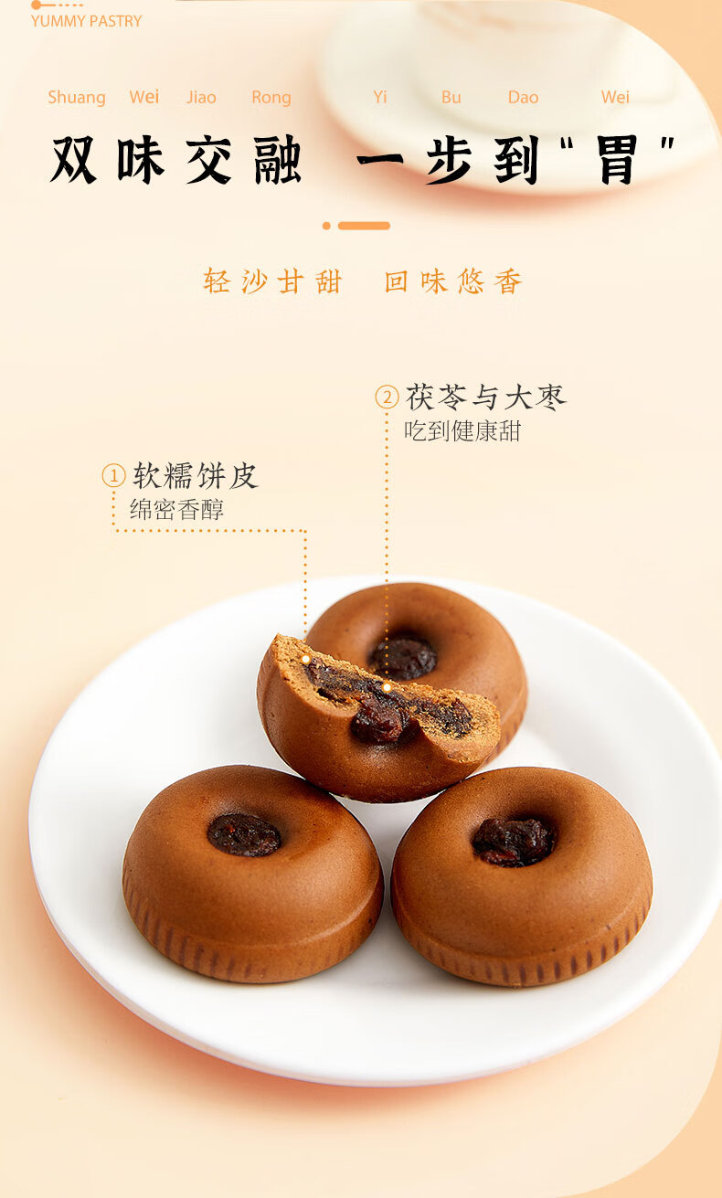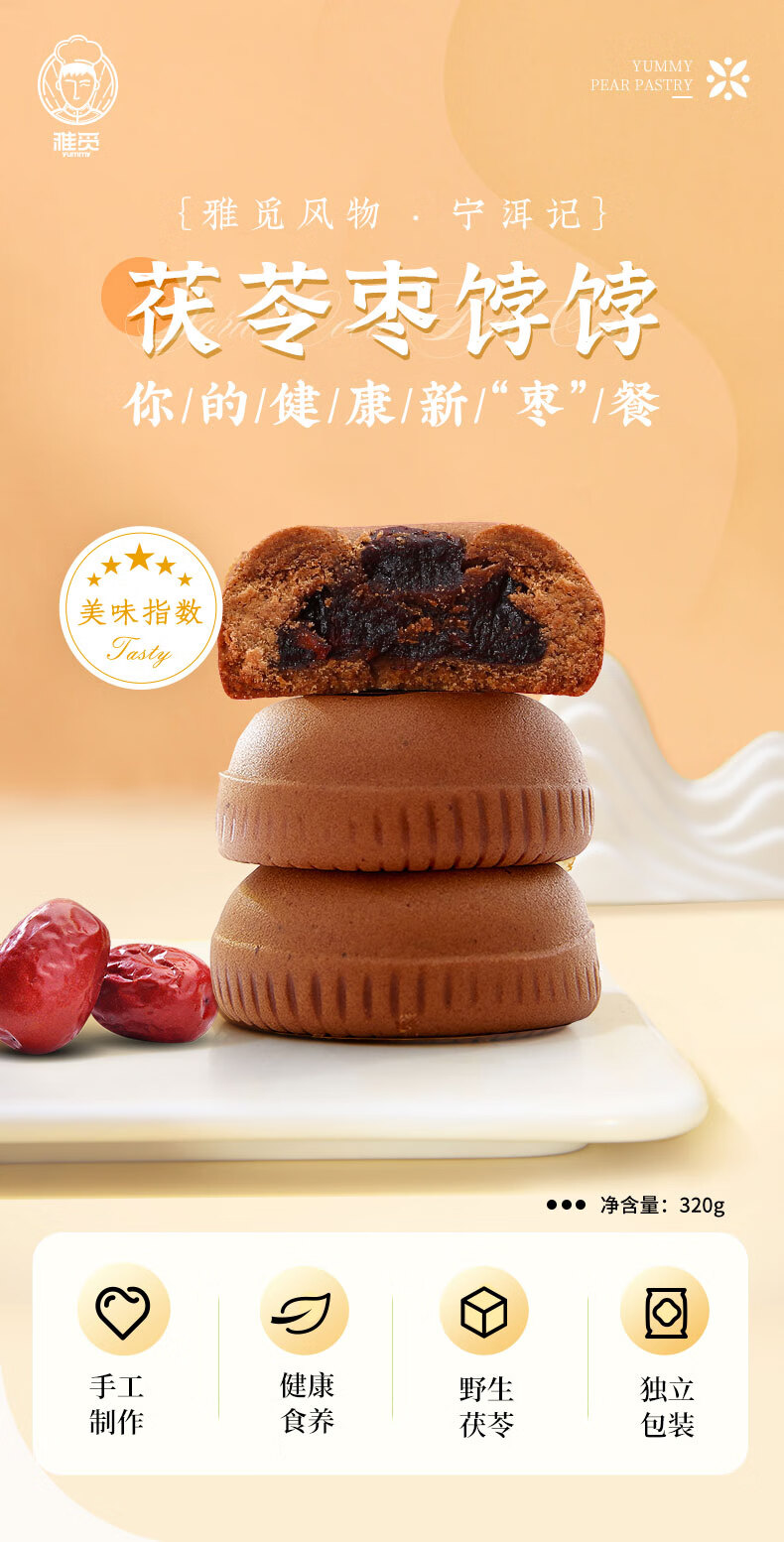 雅觅 茯苓枣饽饽 糕点点心 传统休闲零食小吃 320g×1盒(8枚) 自营