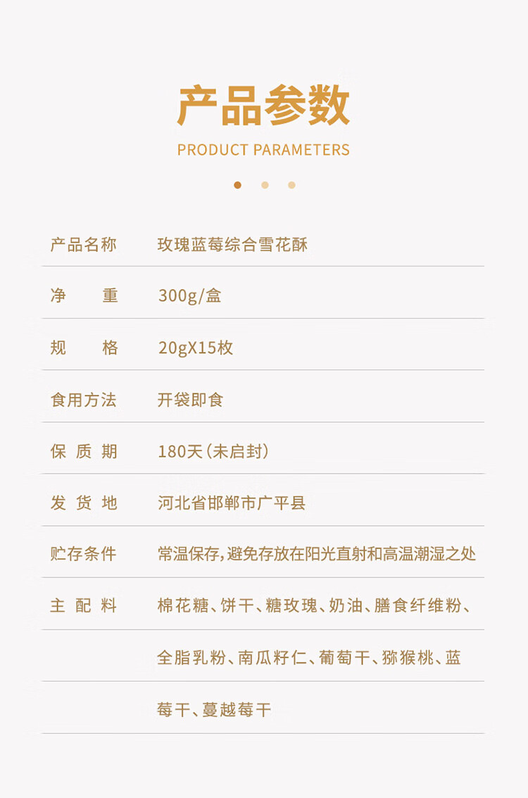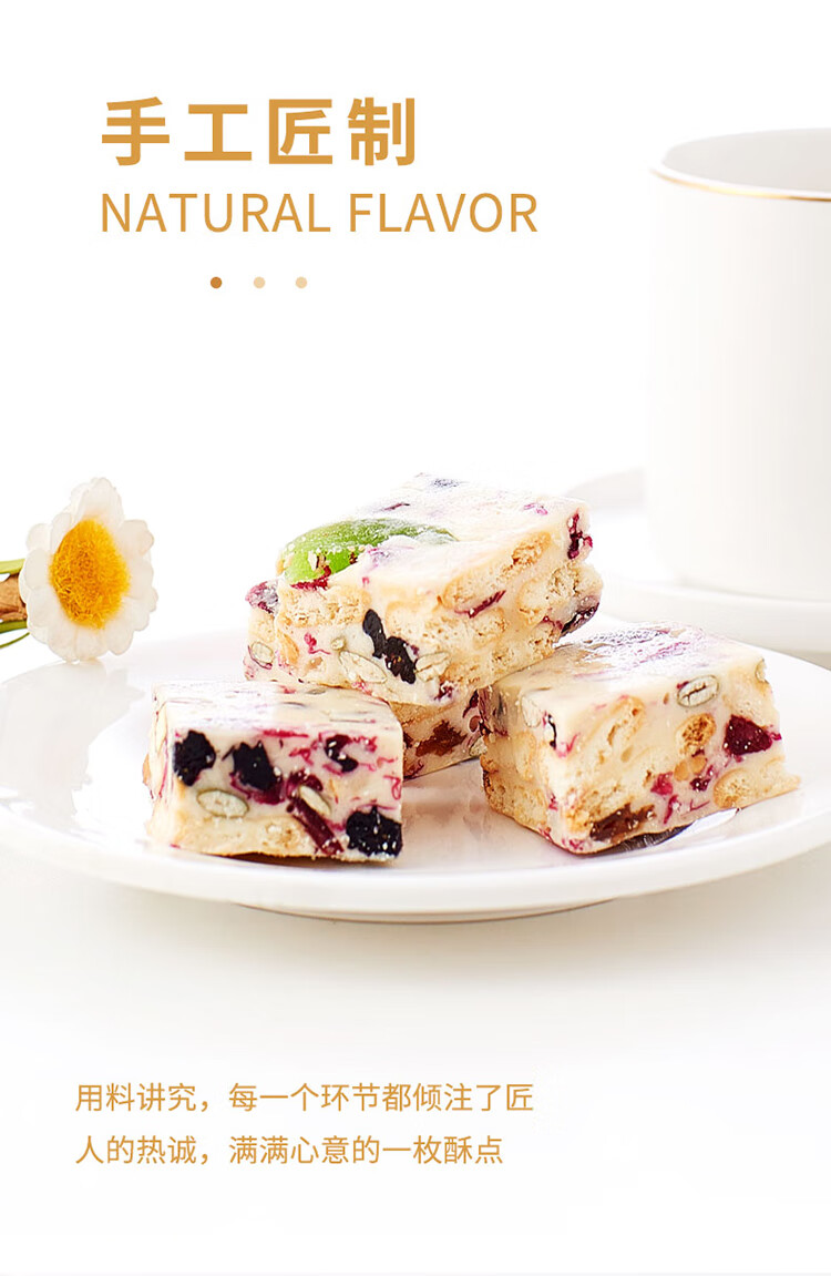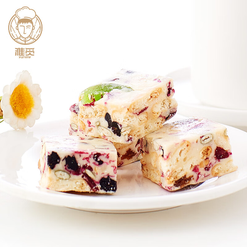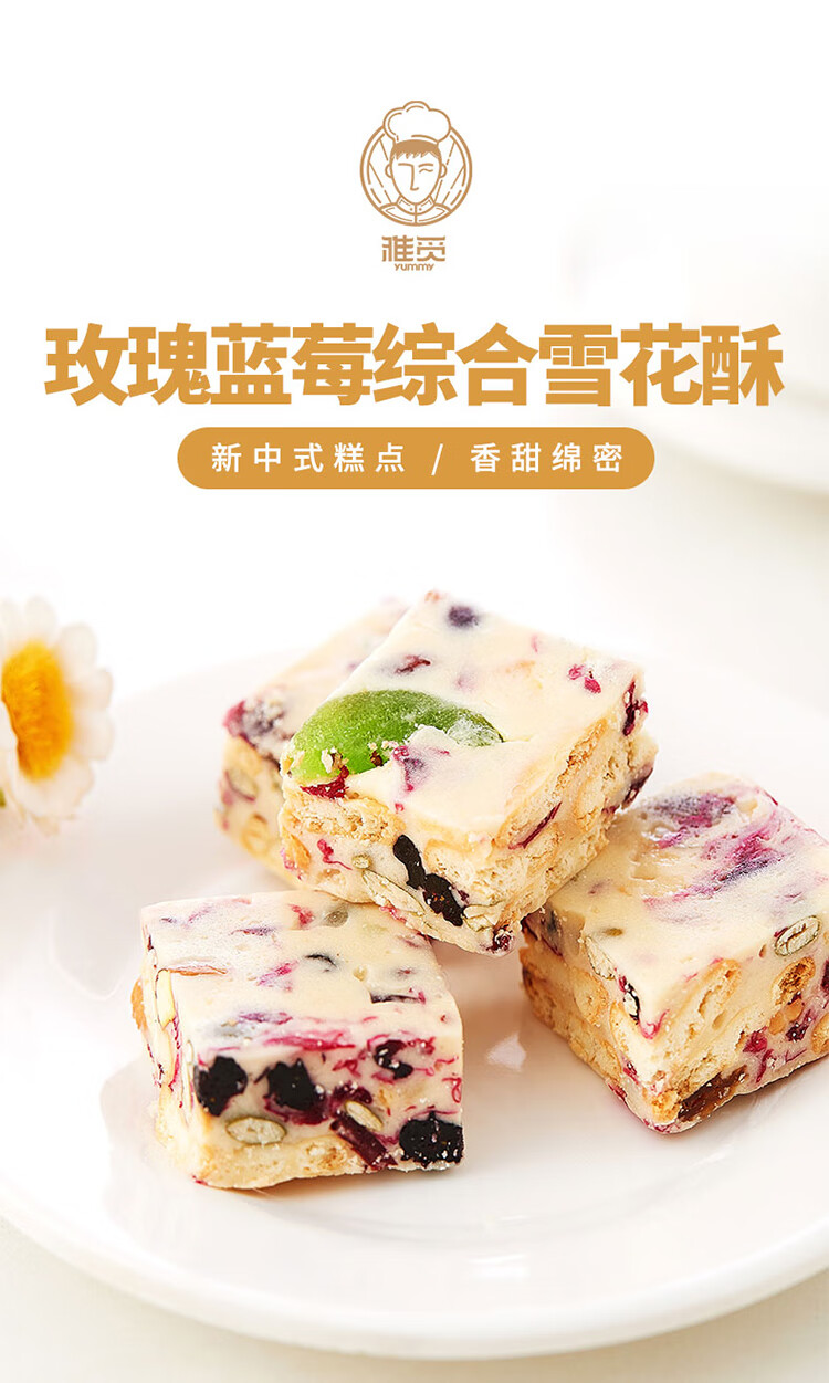 雅觅 玫瑰蓝莓综合雪花酥 点心代餐零食下午茶小吃 300g×1盒(15枚) 自营