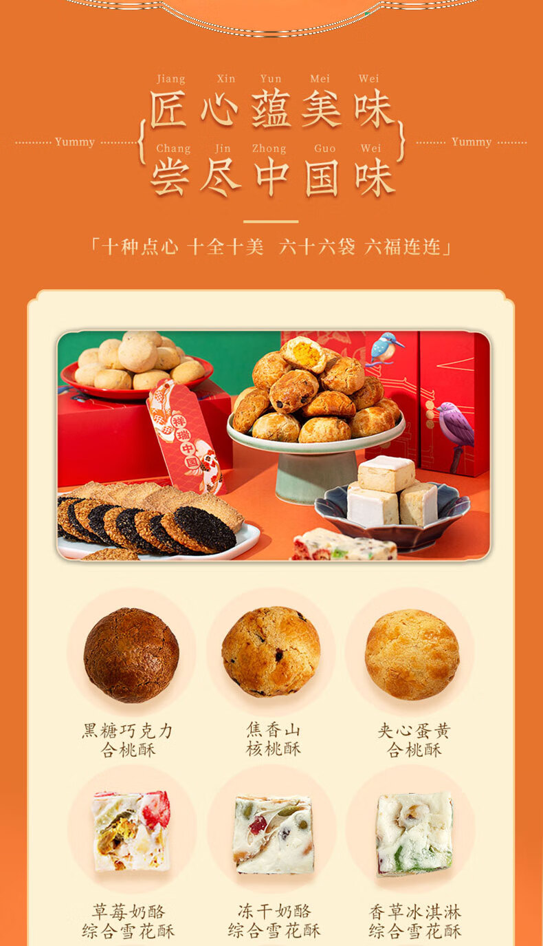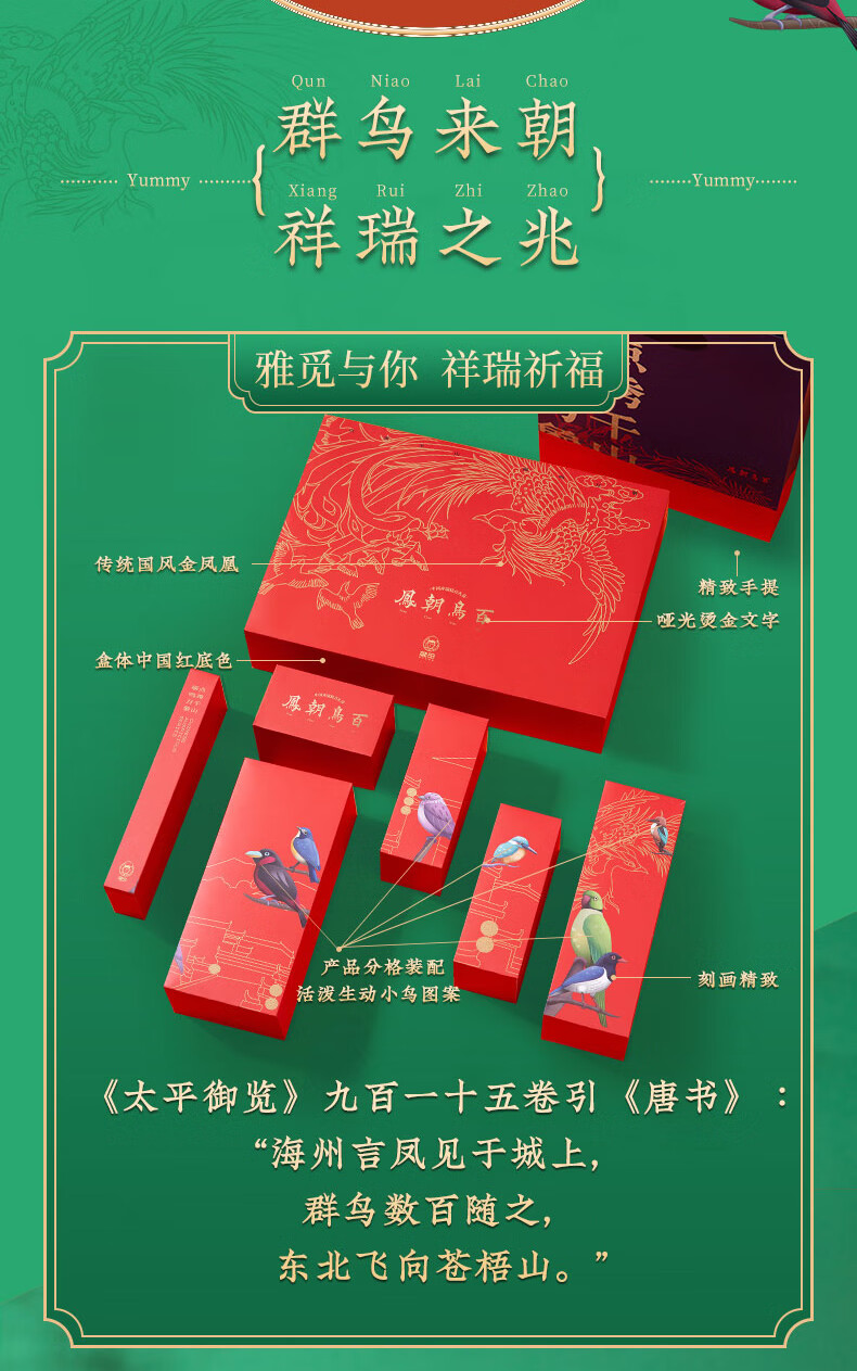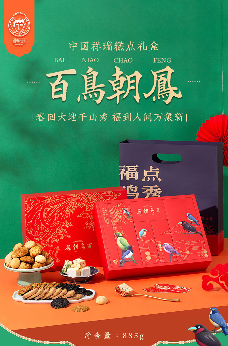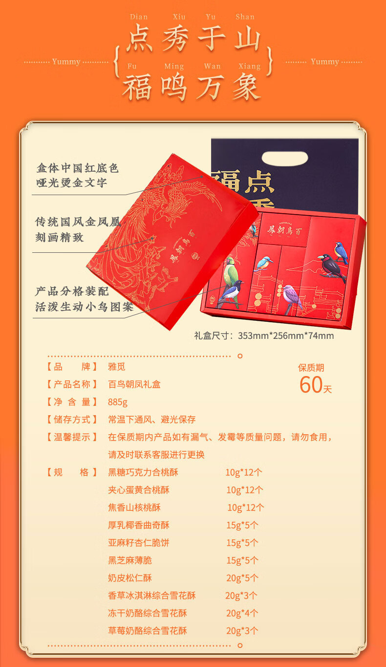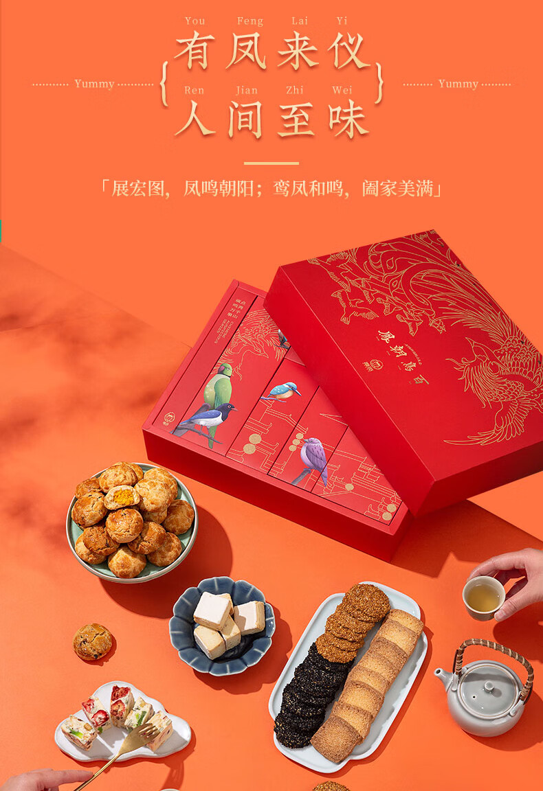 雅觅 百鸟朝凤 什锦糕点综合礼盒 885g×1盒 自营