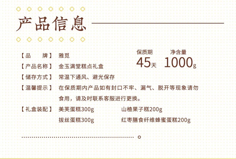 雅觅 金玉满堂糕点礼盒 手作多味早餐小蛋糕 1000g×1盒 自营