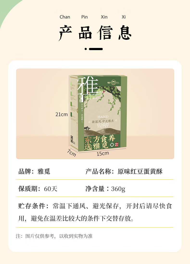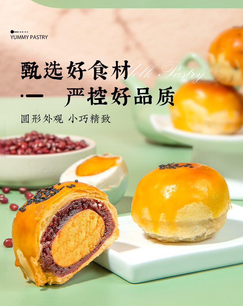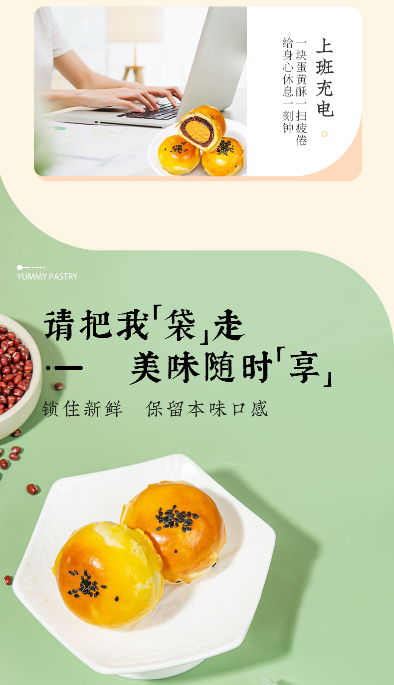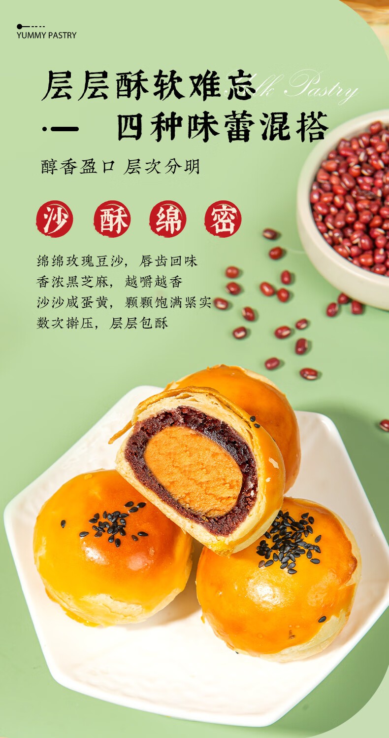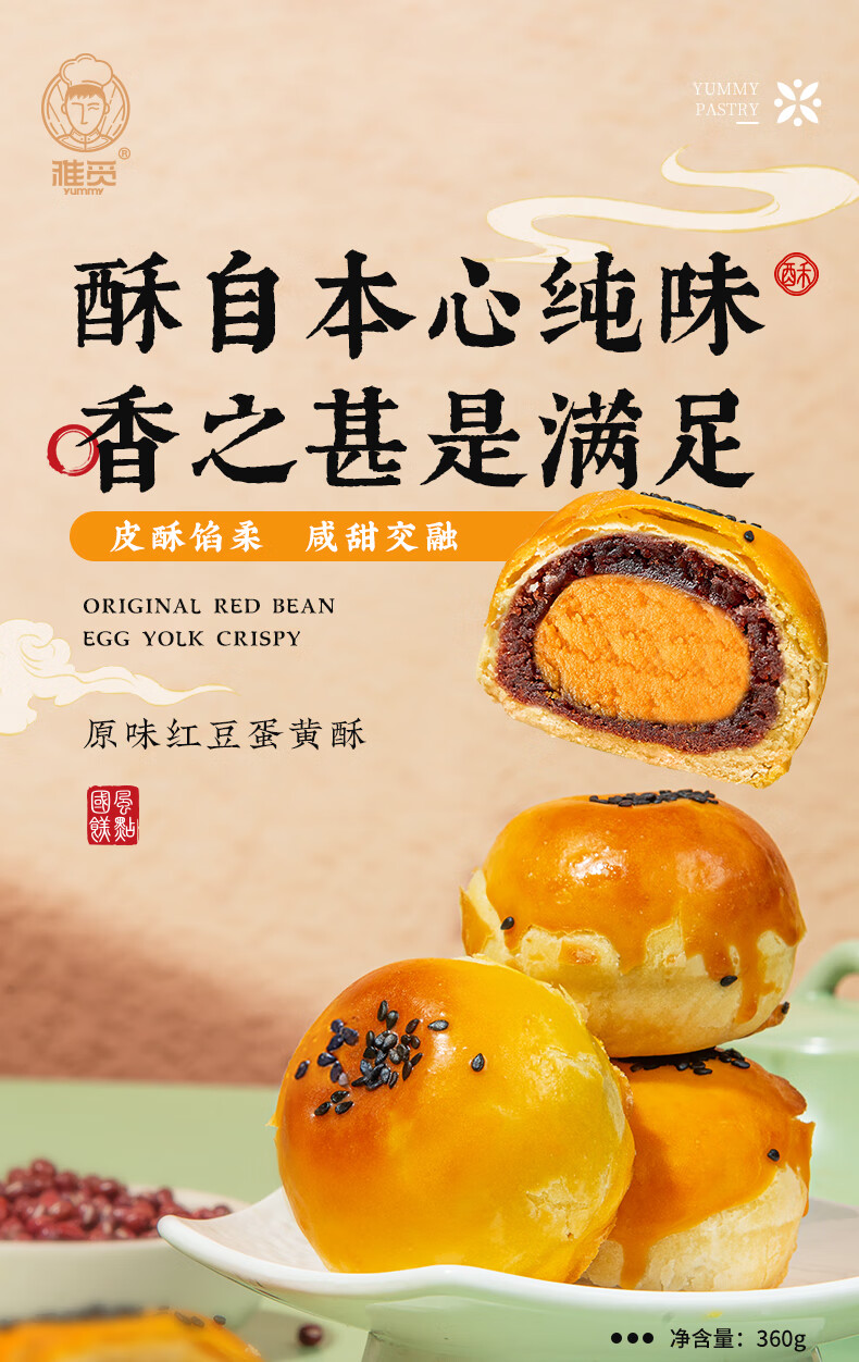 雅觅 原味红豆蛋黄酥 手工特产糕点心 零食小吃 360g×1盒(6枚) 自营